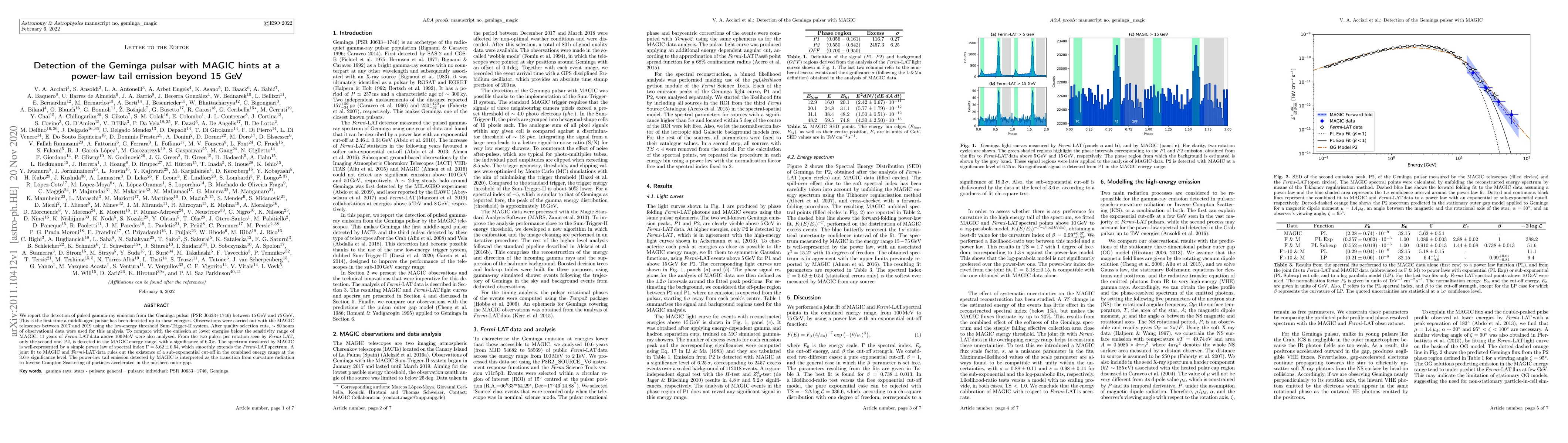 The Geminga pulsar has been detected emitting gamma-ray pulses up to 75 GeV, with a power-law tail emission spectrum extending the previously known energy range, suggesting a transition from curvature radiation to Inverse Compton Scattering.