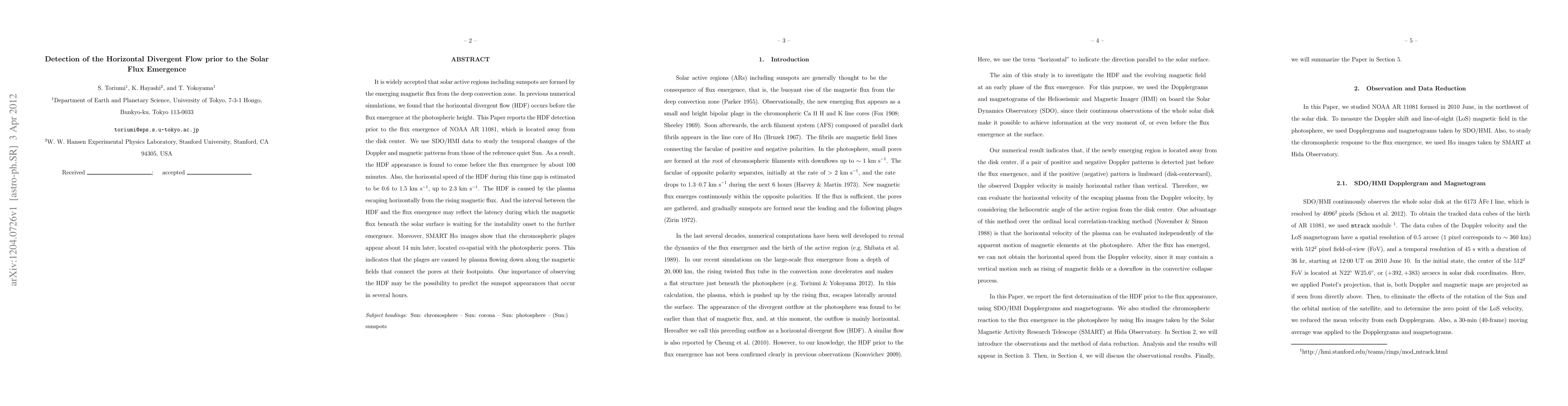 This paper reports the detection of horizontal divergent flow (HDF) preceding the emergence of solar magnetic flux in NOAA AR 11081, using SDO/HMI data. The HDF appears approximately 100 minutes before flux emergence, indicating a latency period before instability onset.