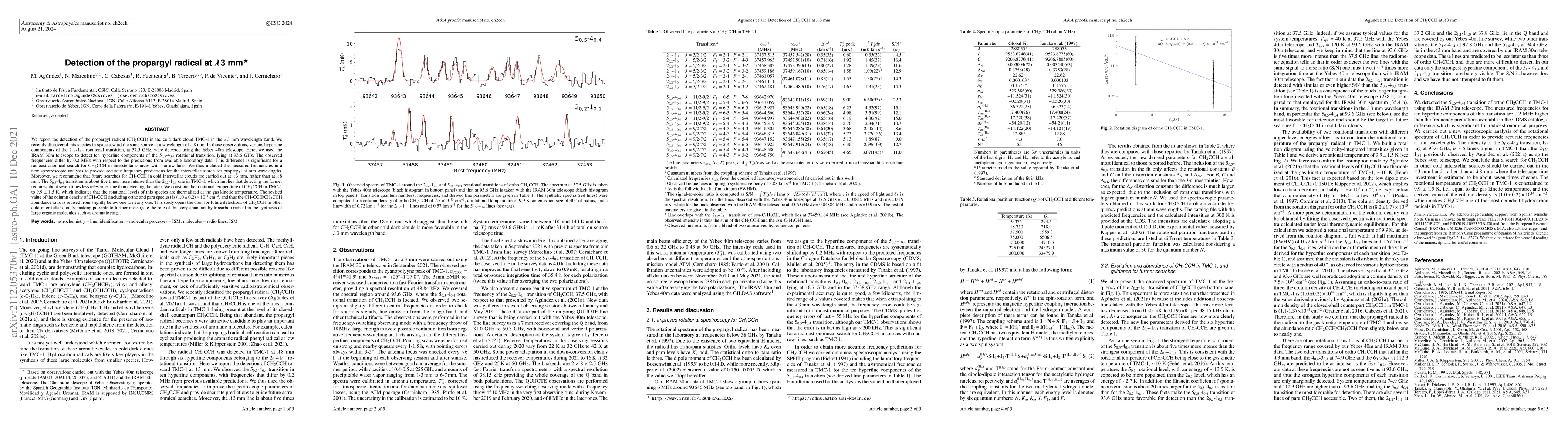 A spectroscopic analysis of the rotationals spectrum of CH2CCH in TMC-1 was carried out using the IRAM 30m telescope.
