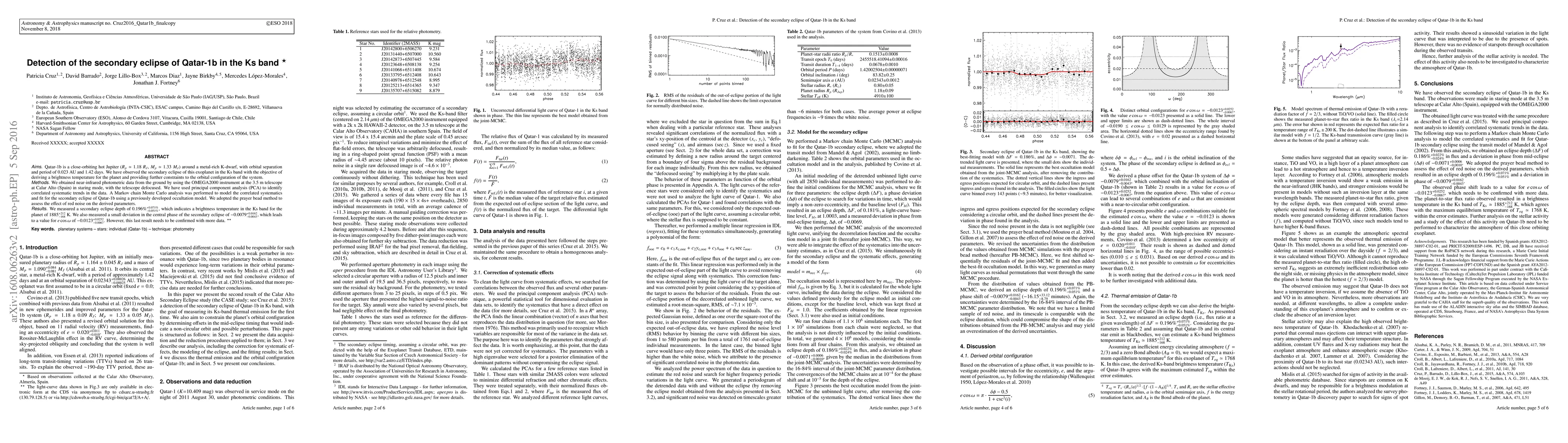 This paper reports the detection of the secondary eclipse of the hot Jupiter Qatar-1b in the Ks band, yielding a brightness temperature of $1885^{+212}_{-168}$ K. The study used near-infrared photometry from the OMEGA2000 instrument and applied PCA and MCMC analysis to refine the eclipse depth and model systematic trends.