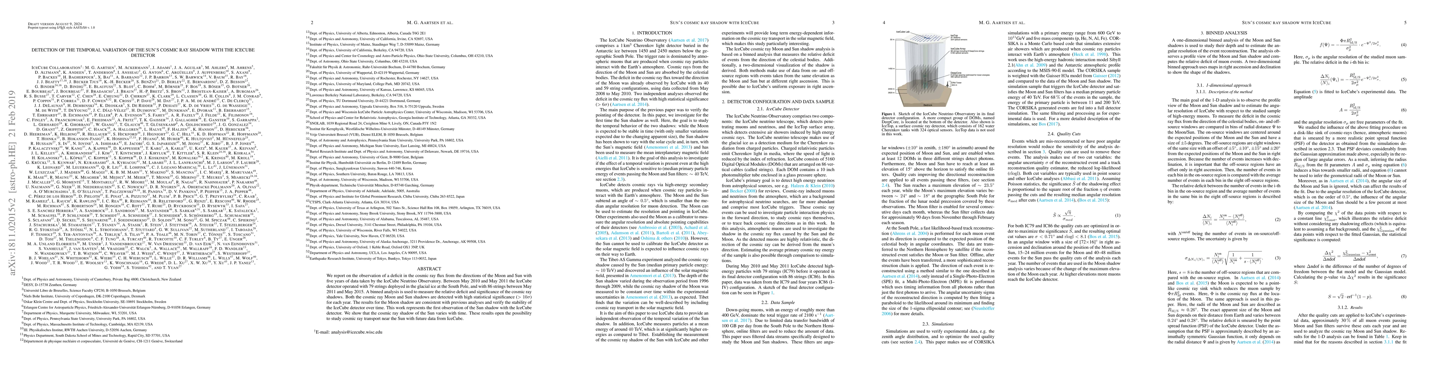 The IceCube detector observed a deficit in cosmic ray flux from the direction of the Sun, indicating time-varying cosmic ray shadow.