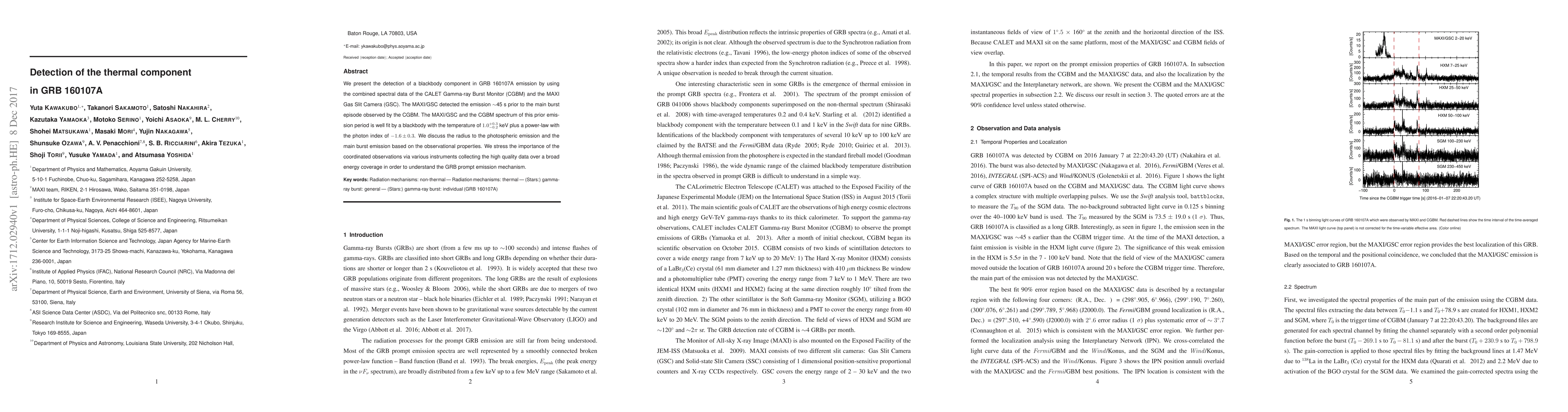 We present the detection of a blackbody component in GRB 160107A emission by using the combined spectral data of the CALET Gamma-ray Burst Monitor (CGBM) and the MAXI Gas Slit Camera (GSC). The MAXI/GSC detected the emission $\sim$45 s prior to the main burst episode observed by the CGBM. The MAXI/GSC and the CGBM spectrum of this prior emission period is well fit by a blackbody with the temperature of $1.0^{+0.3}_{-0.2}$ keV plus a power-law with the photon index of $-1.6 \pm 0.3$. We discuss the radius to the photospheric emission and the main burst emission based on the observational properties. We stress the importance of the coordinated observations via various instruments collecting the high quality data over a broad energy coverage in order to understand the GRB prompt emission mechanism.