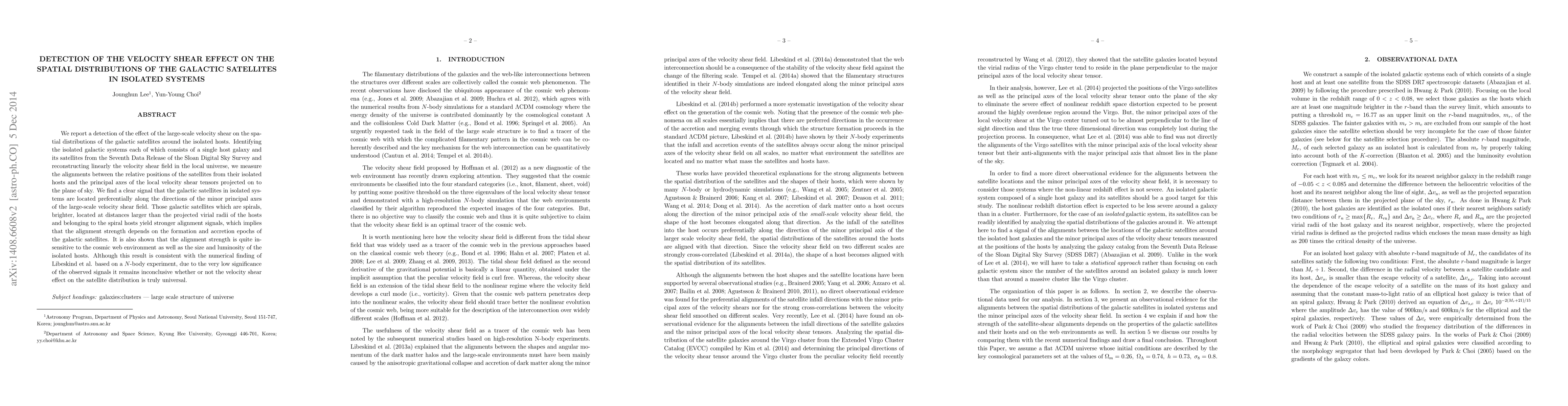This study detects a significant alignment of galactic satellites in isolated systems with the minor principal axes of large-scale velocity shear fields, suggesting that satellite formation and accretion epochs influence this alignment. However, the low significance of the observed signals leaves uncertainty regarding the universality of this effect.
