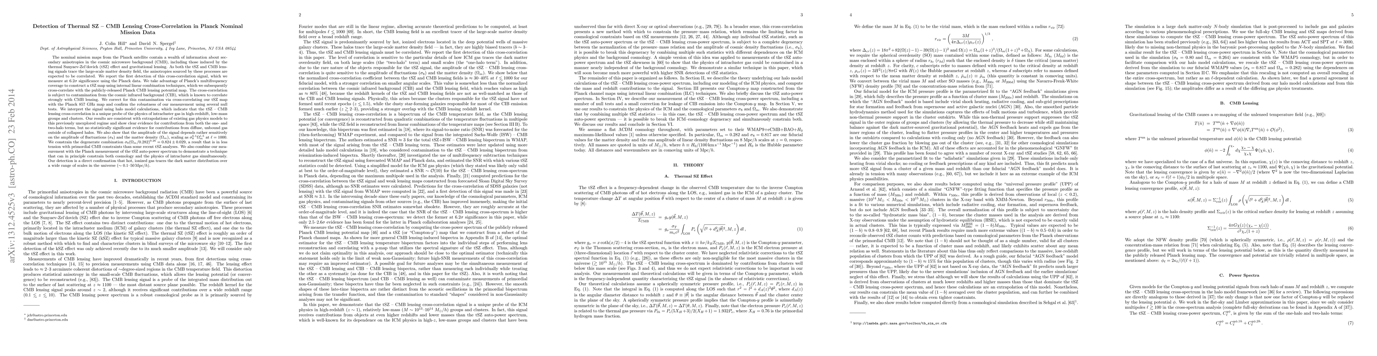 The Planck satellite's data reveals a significant detection (6.2 sigma) of the cross-correlation between thermal Sunyaev-Zel'dovich effect and CMB lensing, confirming that hot gas traces the dark matter distribution. This detection provides insights into the physics of intracluster gas and constrains the combination $\sigma_8 (\Omega_m/0.282)^{0.26} = 0.824 \pm 0.029$, aligning with primordial CMB constraints.