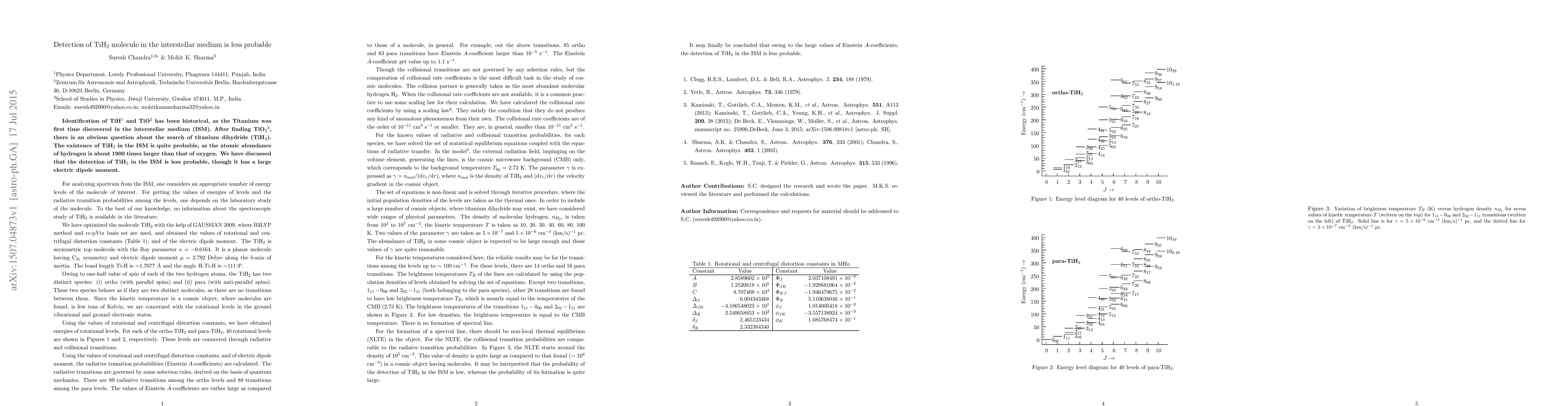 Summary: Despite the high hydrogen abundance in the interstellar medium, the detection of titanium dihydride (TiH$_2$) is deemed less probable due to factors beyond its large electric dipole moment, challenging its historical identification alongside TiH$^1$ and TiO$^2$.