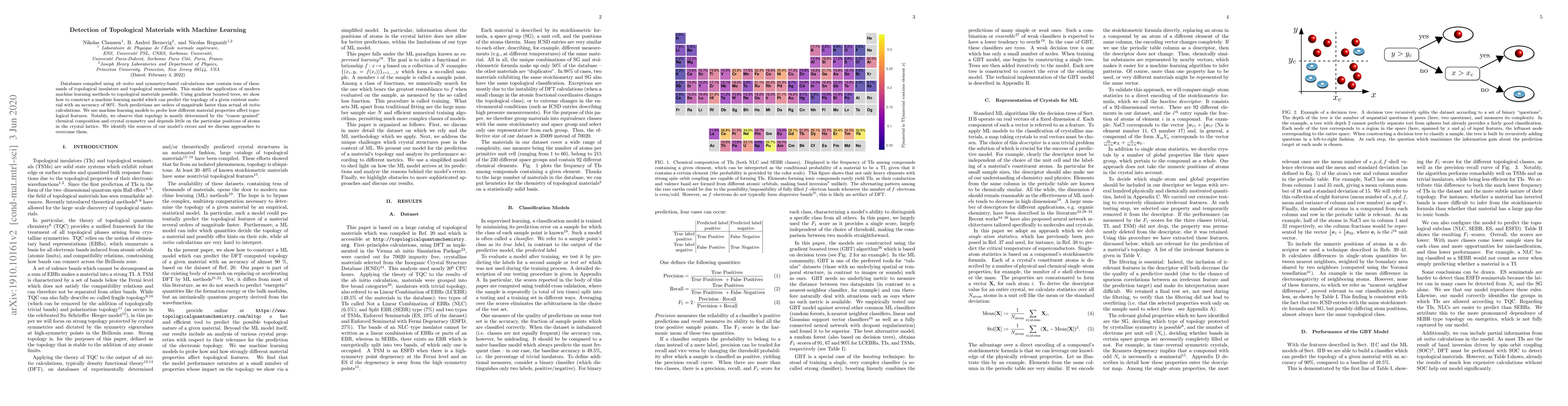 This paper demonstrates the use of gradient boosted trees for predicting the topology of topological materials, achieving 90% accuracy and significantly faster predictions compared to ab-initio calculations. The study identifies key material properties that aid in detection and discusses strategies to improve model accuracy.