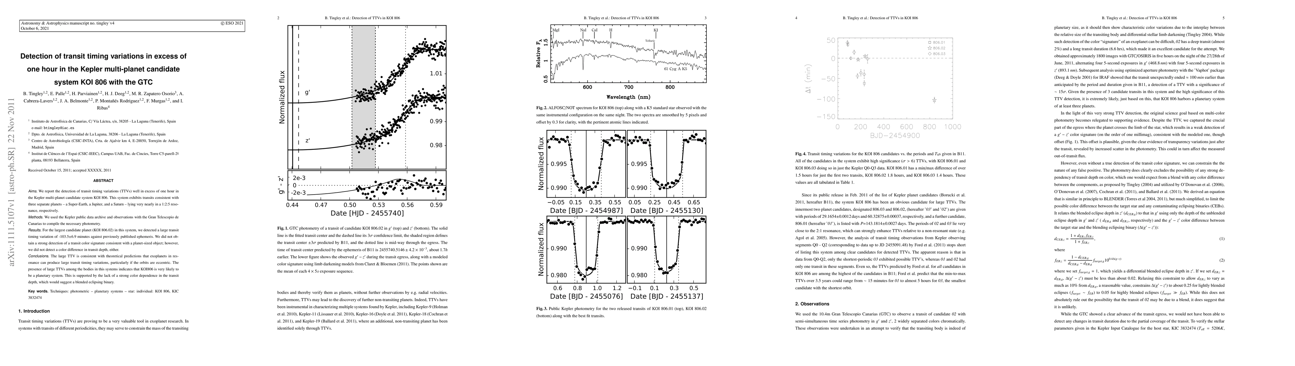 The research utilized Kepler public data and observations with the Gran Telescopio de Canarias (GTC) to compile photometry for the KOI 806 system, focusing on transit timing variations (TTVs) for three candidate planets in near 1:2:5 resonance.