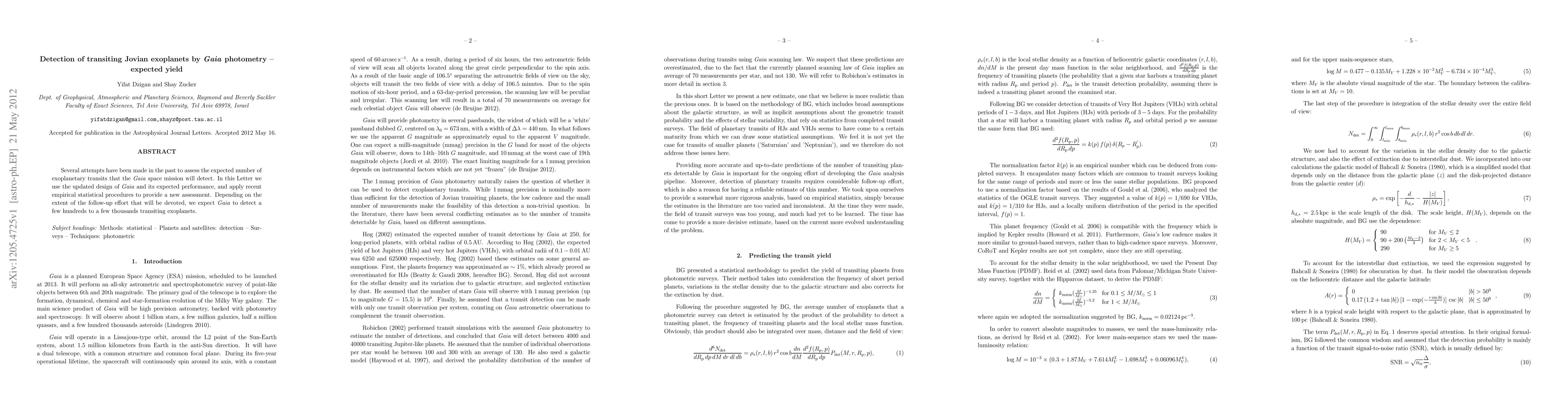 The paper presents an updated methodology for estimating Gaia's expected yield of transiting exoplanets, incorporating recent empirical statistical procedures and the updated Gaia design.
