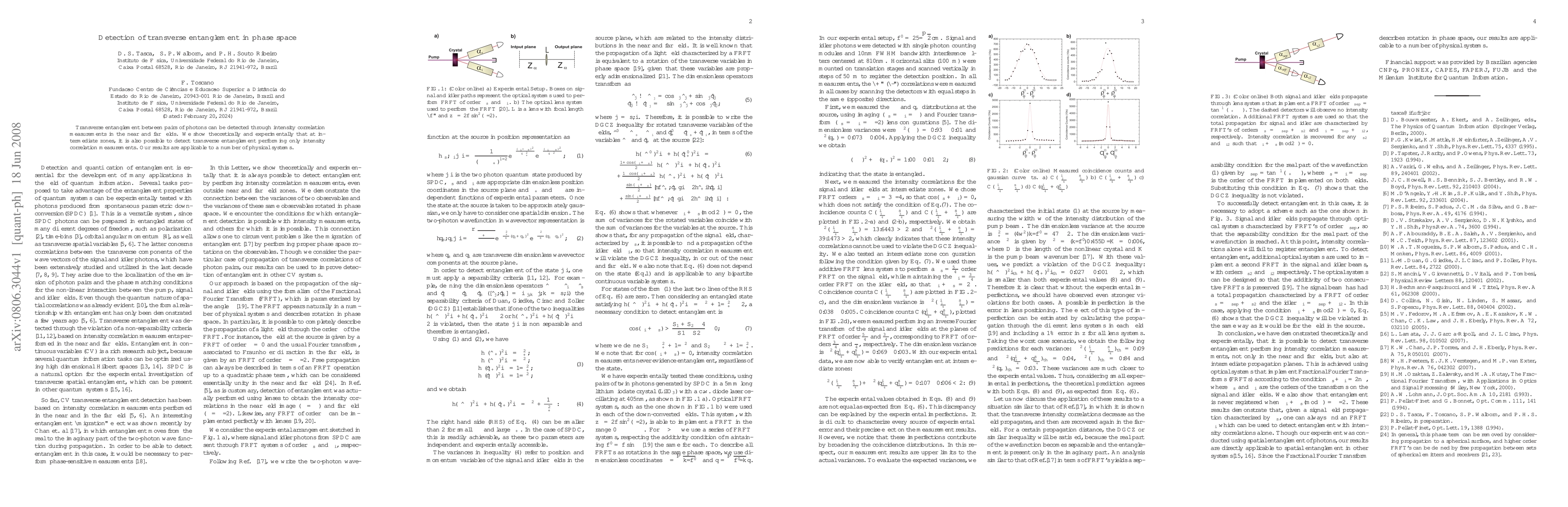 Transverse entanglement between pairs of photons can be detected through intensity correlation measurements in the near and far fields. We show theoretically and experimentally that at intermediate zones, it is also possible to detect transverse entanglement performing only intensity correlation measurements. Our results are applicable to a number of physical systems.