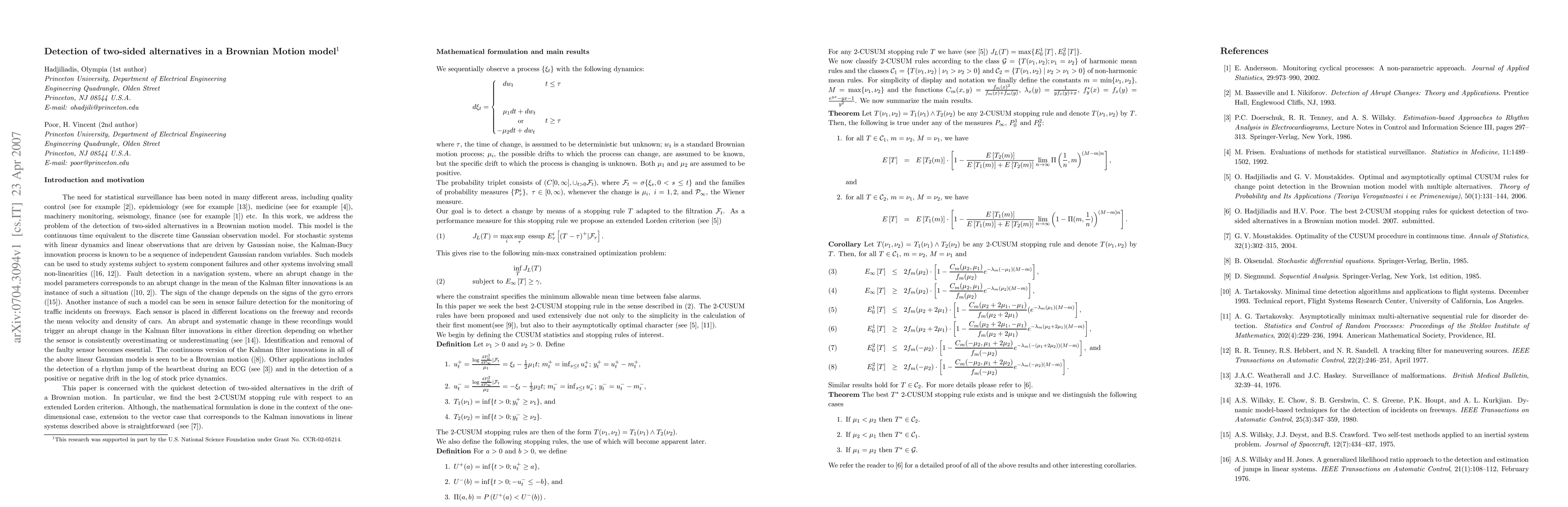 This work examines the problem of sequential detection of a change in the drift of a Brownian motion in the case of two-sided alternatives. Applications to real life situations in which two-sided changes can occur are discussed. Traditionally, 2-CUSUM stopping rules have been used for this problem due to their asymptotically optimal character as the mean time between false alarms tends to $\infty$. In particular, attention has focused on 2-CUSUM harmonic mean rules due to the simplicity in calculating their first moments. In this paper, we derive closed-form expressions for the first moment of a general 2-CUSUM stopping rule. We use these expressions to obtain explicit upper and lower bounds for it. Moreover, we derive an expression for the rate of change of this first moment as one of the threshold parameters changes. Based on these expressions we obtain explicit upper and lower bounds to this rate of change. Using these expressions we are able to find the best 2-CUSUM stopping rule with respect to the extended Lorden criterion. In fact, we demonstrate not only the existence but also the uniqueness of the best 2-CUSUM stopping both in the case of a symmetric change and in the case of a non-symmetric case. Furthermore, we discuss the existence of a modification of the 2-CUSUM stopping rule that has a strictly better performance than its classical 2-CUSUM counterpart for small values of the mean time between false alarms. We conclude with a discussion on the open problem of strict optimality in the case of two-sided alternatives.