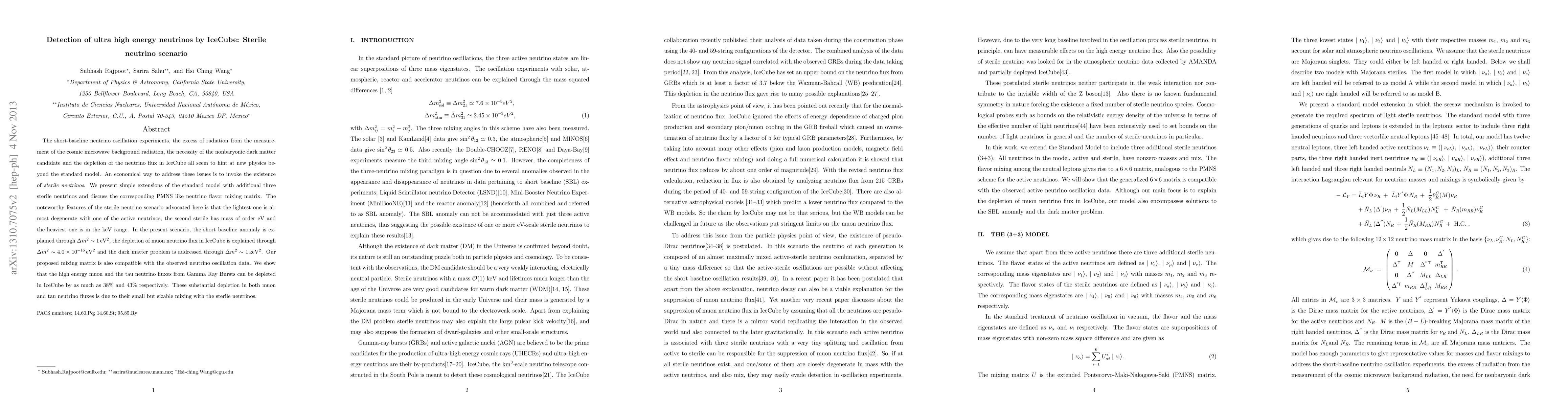 This paper proposes an extension of the standard model with three sterile neutrinos to address anomalies in short-baseline neutrino oscillations, cosmic microwave background radiation, and the depletion of neutrino flux in IceCube. The model explains these phenomena through specific mass differences and mixing with sterile neutrinos, offering a potential dark matter candidate.