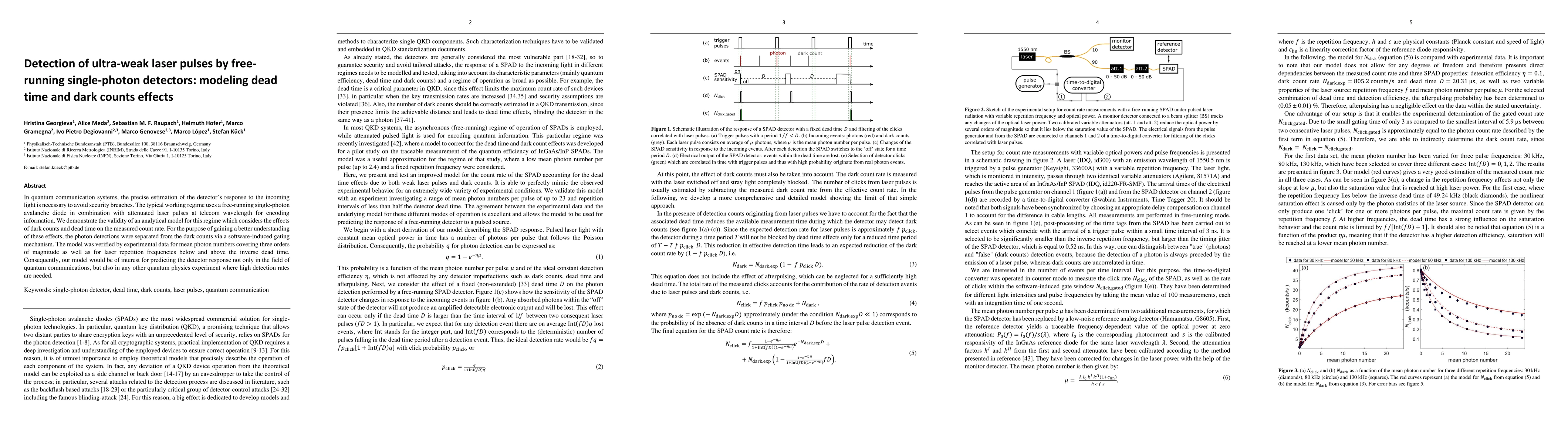 This paper presents an analytical model to predict the response of free-running single-photon detectors in quantum communication systems, accounting for dark counts and dead time effects. Experimental validation confirms the model's accuracy across a wide range of photon numbers and laser frequencies.