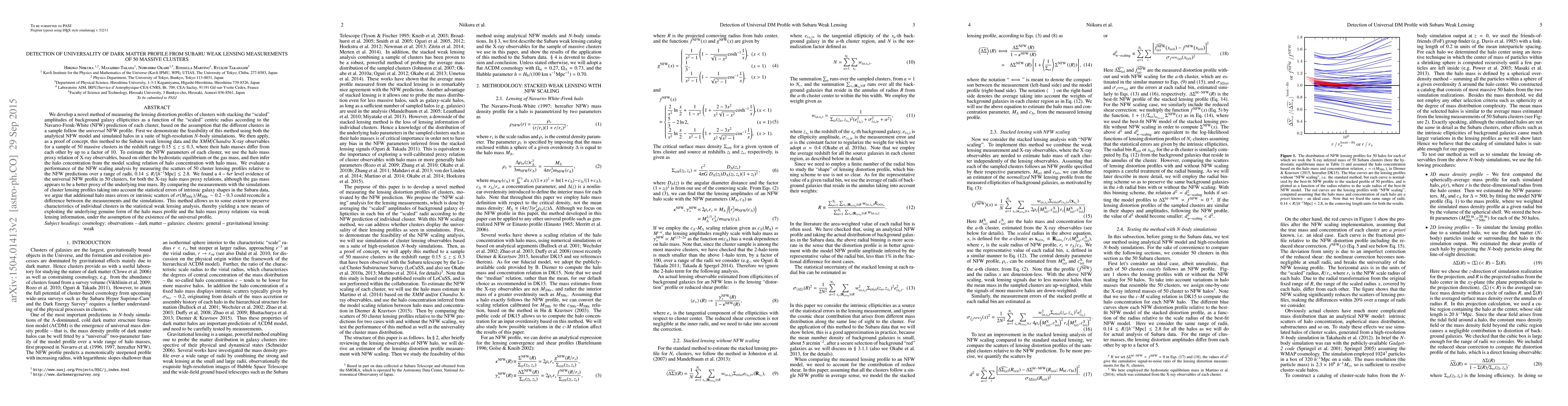 This paper develops a novel method to measure the lensing distortion profiles of massive clusters using Subaru weak lensing data, demonstrating the universality of the NFW dark matter profile across 50 clusters. The method shows a 4-6σ level evidence supporting the NFW profile, suggesting that gas mass may be a better mass proxy.