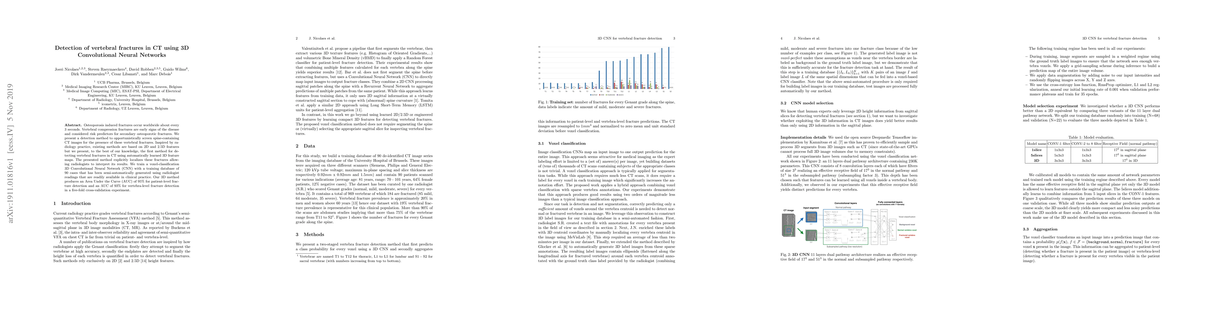 This paper introduces a novel 3D Convolutional Neural Network (CNN) method for detecting vertebral fractures in CT scans, achieving high AUC scores of 95% and 93% for patient-level and vertebra-level detection, respectively. Unlike previous 2D-based methods, this 3D approach automatically learns features from 3D feature maps, providing explicit localization of fractures for radiologist interpretation.