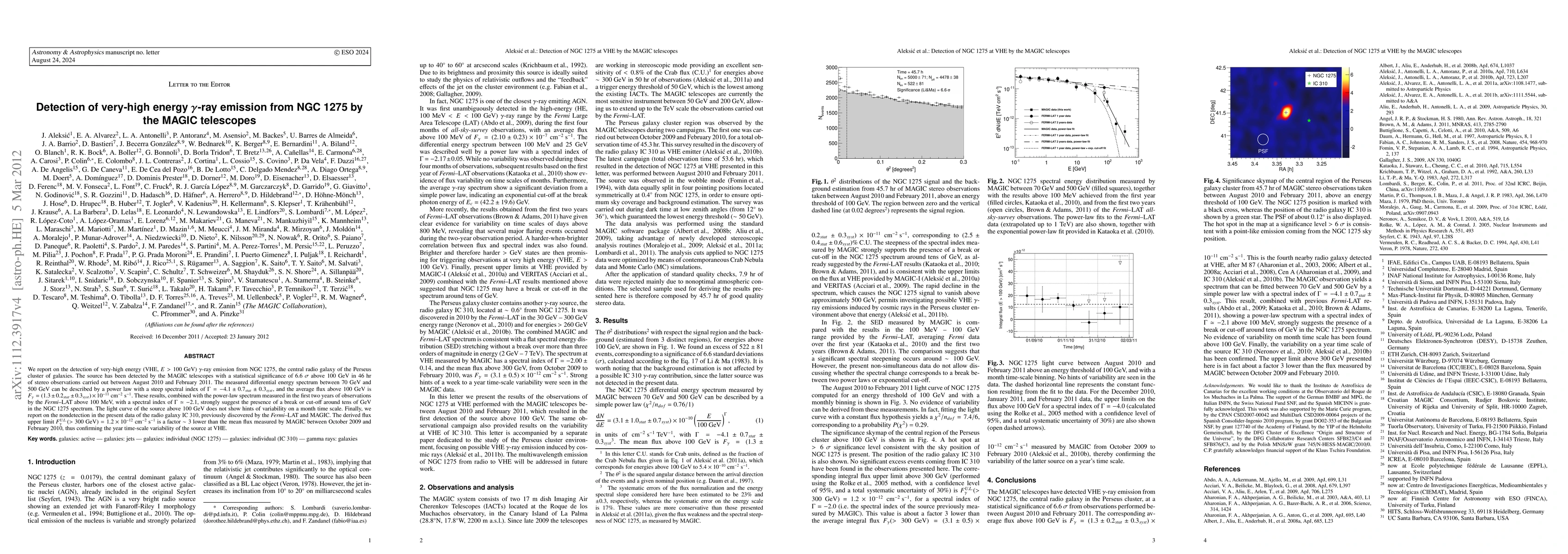 Researchers detected very-high energy gamma-ray emission from NGC 1275 using MAGIC telescopes, finding a power-law spectrum with a steep spectral index, and suggesting the presence of a break or cut-off around tens of GeV.
