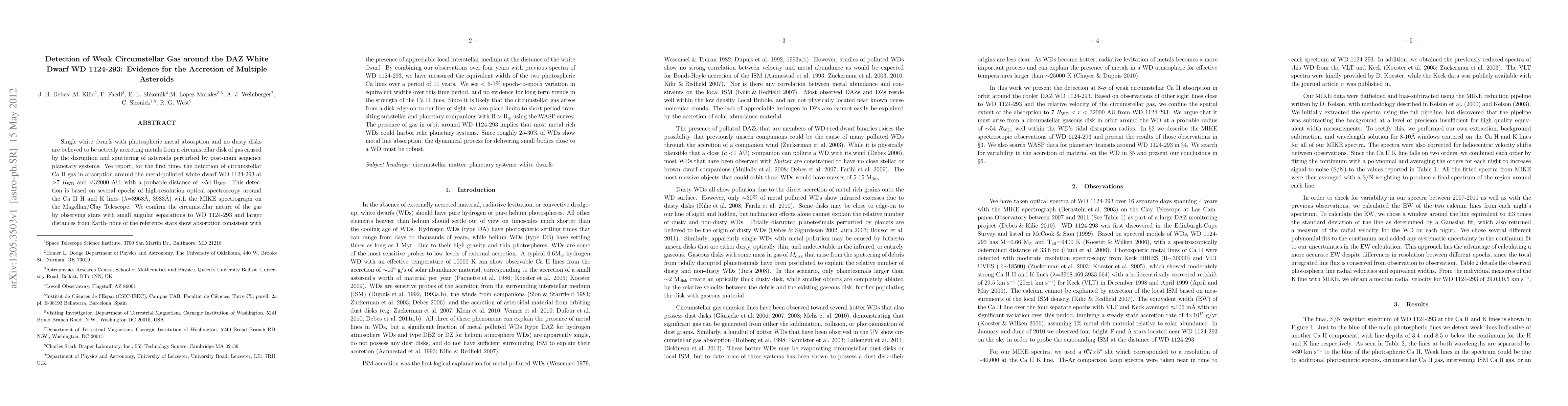 This paper reports the detection of circumstellar Ca~II gas around the DAZ white dwarf WD 1124-293, providing evidence for the accretion of multiple asteroids. The gas is located within the white dwarf's tidal disruption radius, suggesting the presence of planetary systems and supporting the theory that metal-polluted white dwarfs accrete metals from asteroid destruction.
