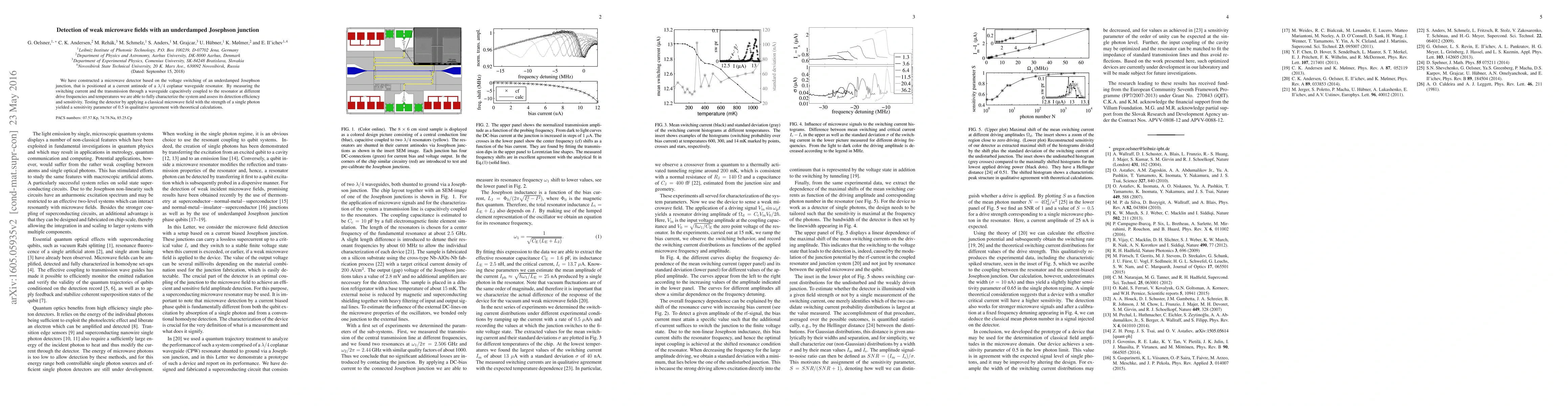 We have constructed a microwave detector based on the voltage switching of an underdamped Josephson junction, that is positioned at a current antinode of a {\lambda}/4 coplanar waveguide resonator. By measuring the switching current and the transmission through a waveguide capacitively coupled to the resonator at different drive frequencies and temperatures we are able to fully characterize the system and assess its detection efficiency and sensitivity. Testing the detector by applying a classical microwave field with the strength of a single photon yielded a sensitivity parameter of 0.5 in qualitative agreement with theoretical calculations.