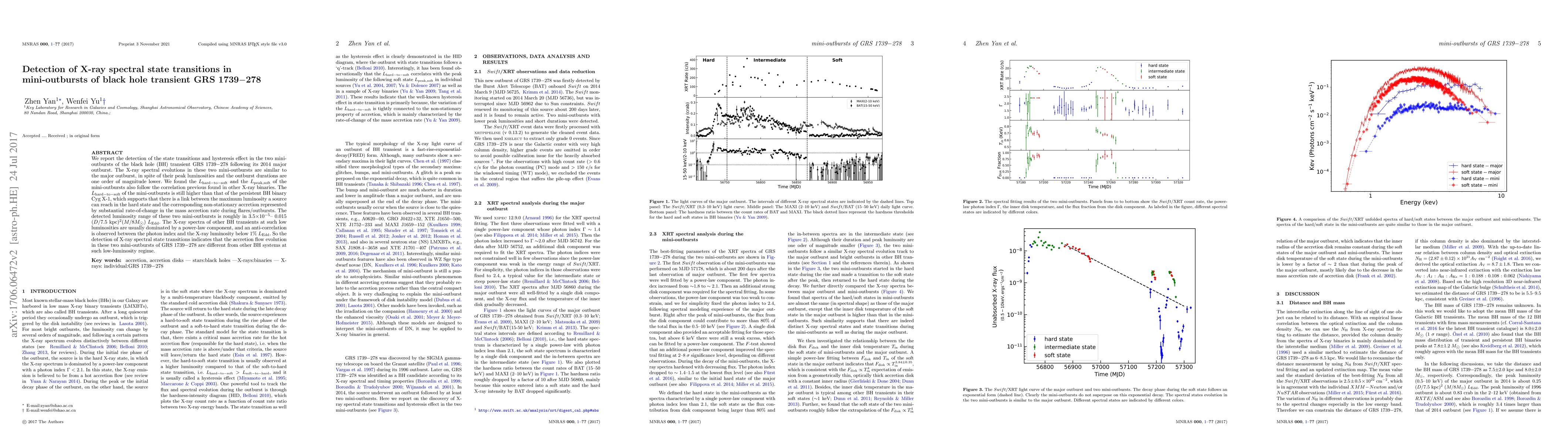 The research analyzed X-ray spectral state transitions in two mini-outbursts of the black hole transient GRS 1739-278 following its 2014 major outburst, comparing their spectral evolution with the major outburst and other X-ray binaries.