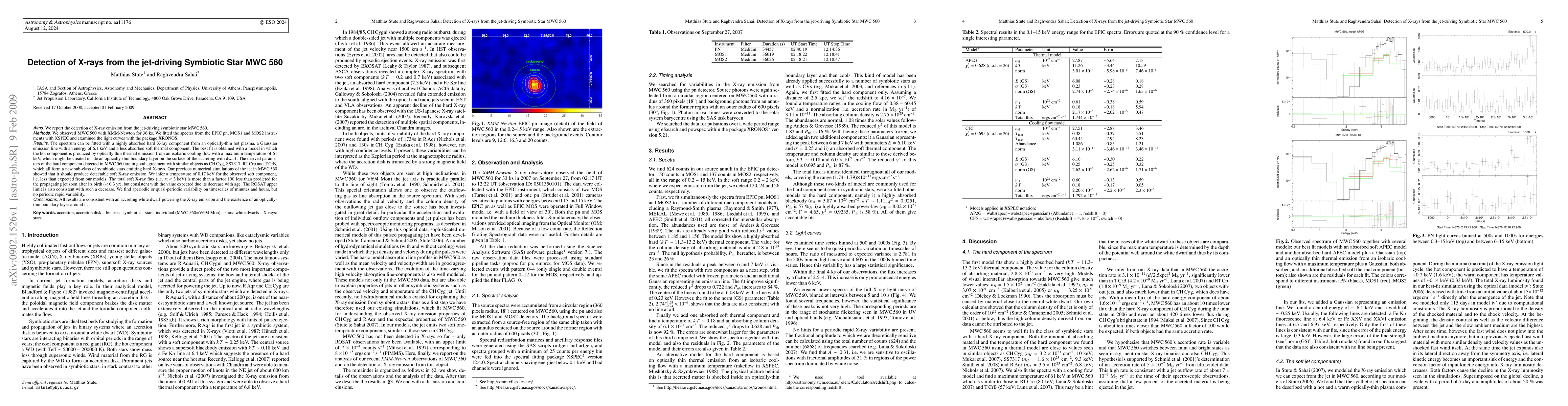 This paper reports the detection of X-ray emission from the symbiotic star MWC 560 using XMM-Newton, revealing a hard X-ray component from an optically-thin hot plasma and a soft thermal component. The findings suggest the presence of an accreting white dwarf and an optically-thin boundary layer, classifying MWC 560 as part of a new sub-class of symbiotic stars emitting hard X-rays.