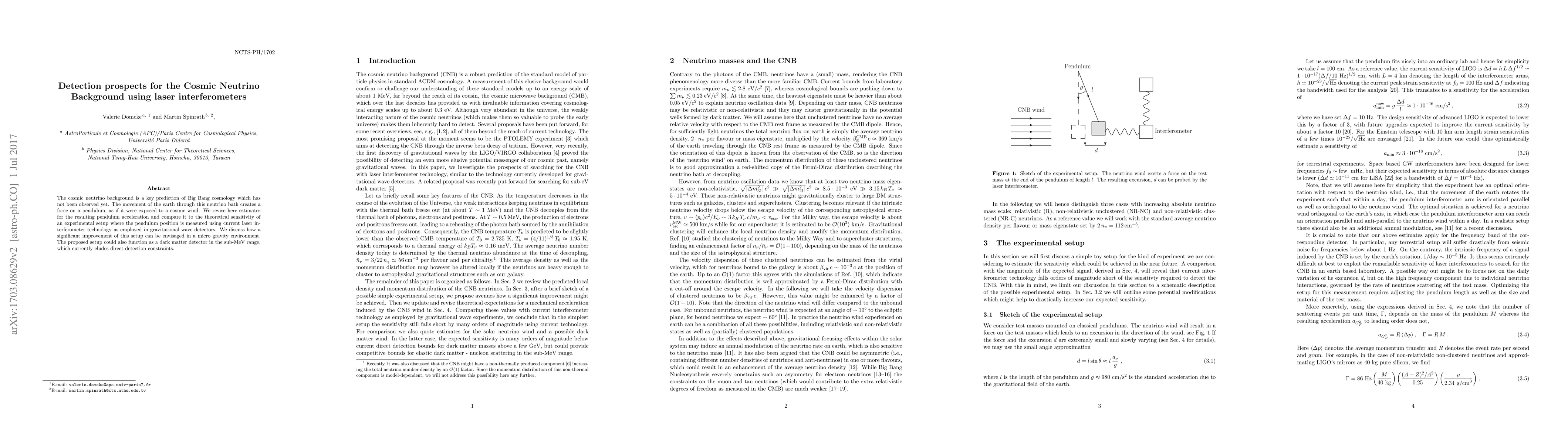 The cosmic neutrino background is a key prediction of Big Bang cosmology which has not been observed yet. The movement of the earth through this neutrino bath creates a force on a pendulum, as if it was exposed to a cosmic wind. We revise here estimates for the resulting pendulum acceleration and compare it to the theoretical sensitivity of an experimental setup where the pendulum position is measured using current laser interferometer technology as employed in gravitational wave detectors. We discuss how a significant improvement of this setup can be envisaged in a micro gravity environment. The proposed setup could simultaneously function as a dark matter detector in the sub-MeV range, which currently eludes direct detection constraints.
