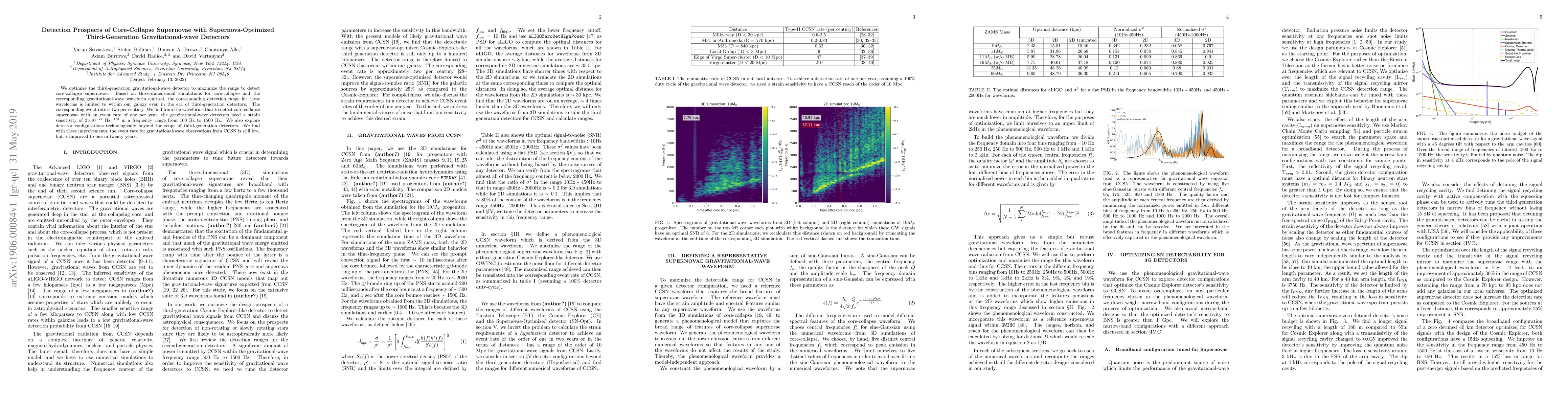 This paper optimizes third-generation gravitational-wave detectors to enhance the detection of core-collapse supernovae, finding that current technology limits detection to within our galaxy with an event rate of two per century. To achieve an annual detection rate, a strain sensitivity of 3×10^-27 Hz^-1/2 is required.