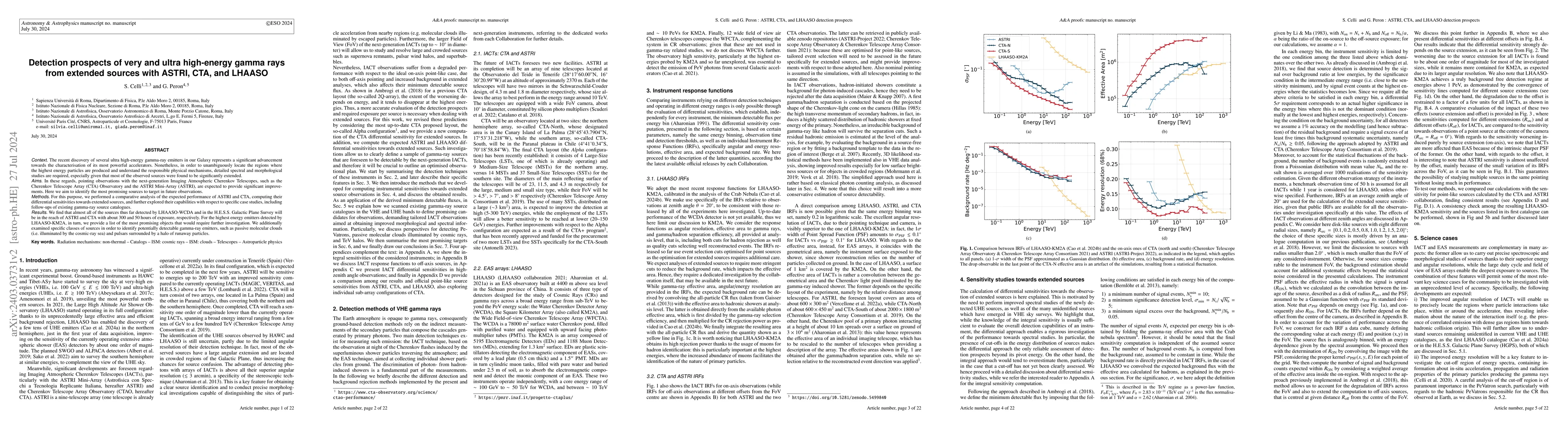 This paper evaluates the detection prospects of very and ultra-high-energy gamma rays from extended sources using ASTRI, CTA, and LHAASO. It identifies promising targets for future observations based on comparative analysis of the telescopes' performance and follows up on existing gamma-ray source catalogs.