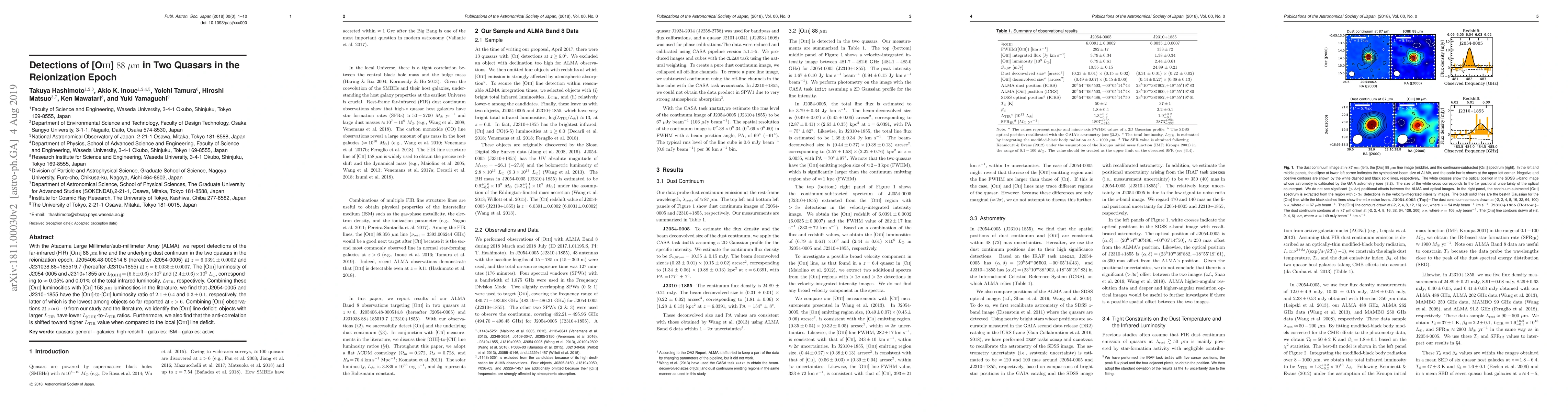 This study, using ALMA, detects the [OIII] 88 μm line in two high-redshift quasars from the reionization epoch, revealing a significant [OIII] line deficit in objects with higher total infrared luminosity compared to local galaxies.