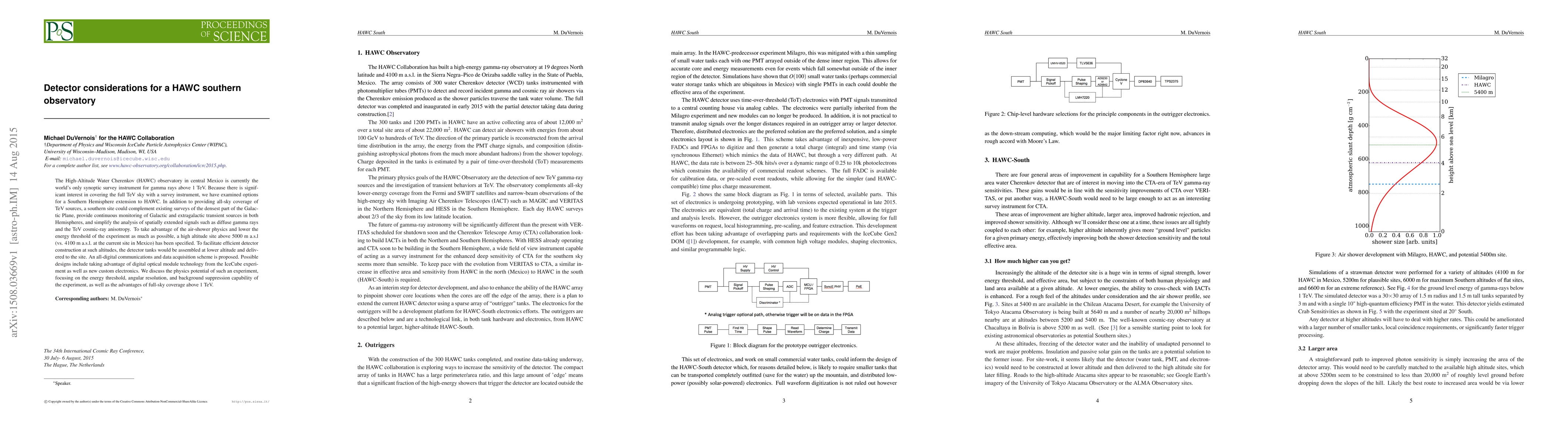 A proposed Southern Observatory for HAWC aims to enhance TeV sky coverage with a high-altitude site above 5000m, offering full-sky detection of gamma rays above 1TeV.