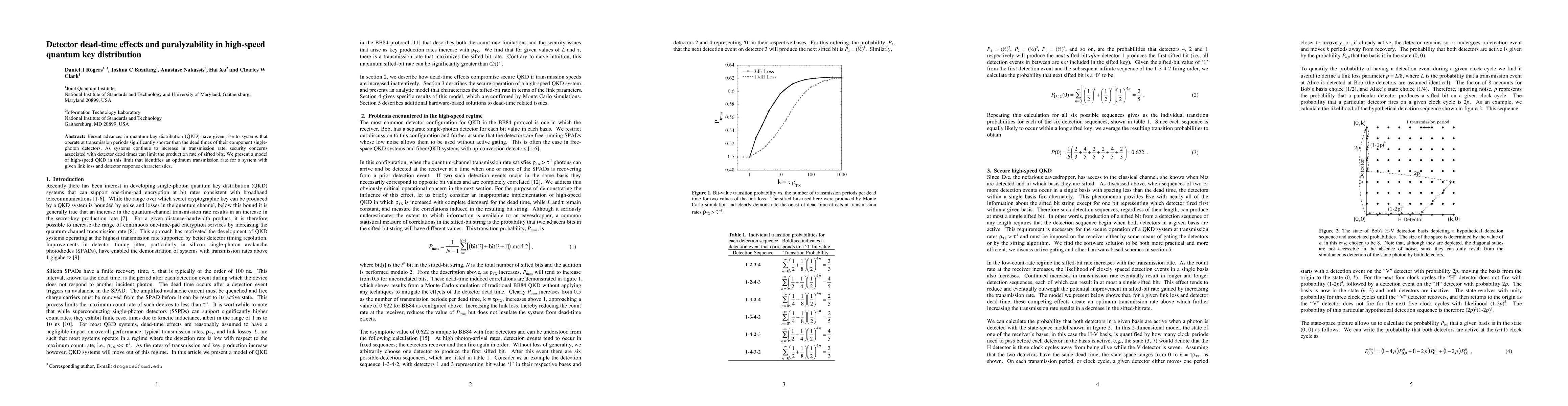 This paper models the effects of detector dead-time and paralyzability in high-speed quantum key distribution, identifying an optimal transmission rate that maximizes sifted bit production while addressing security concerns associated with detector limitations.