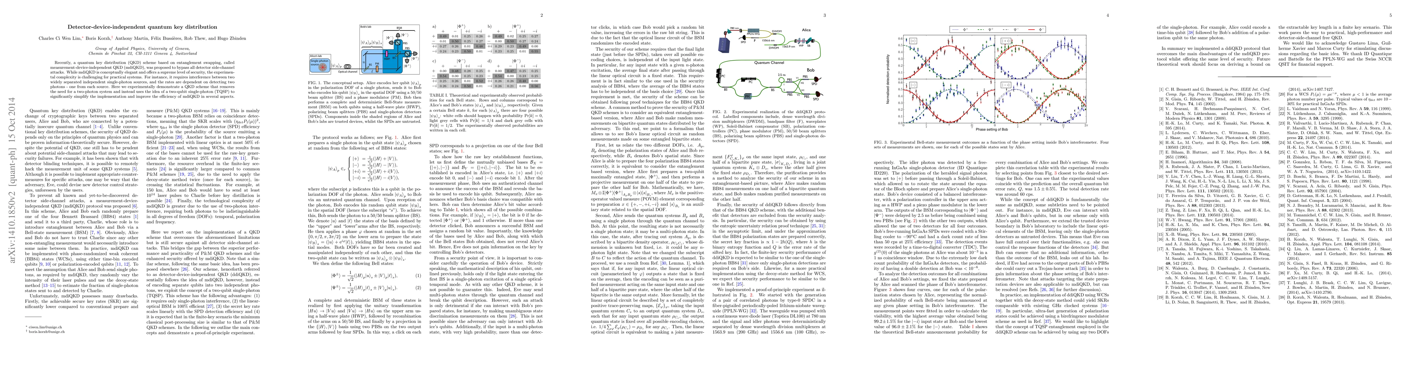 This paper presents a detector-device-independent quantum key distribution (QKD) scheme that simplifies the implementation of measurement-device-independent QKD by using two-qubit single-photons (TQSP) instead of requiring a two-photon system, thus improving efficiency and reducing experimental complexity.