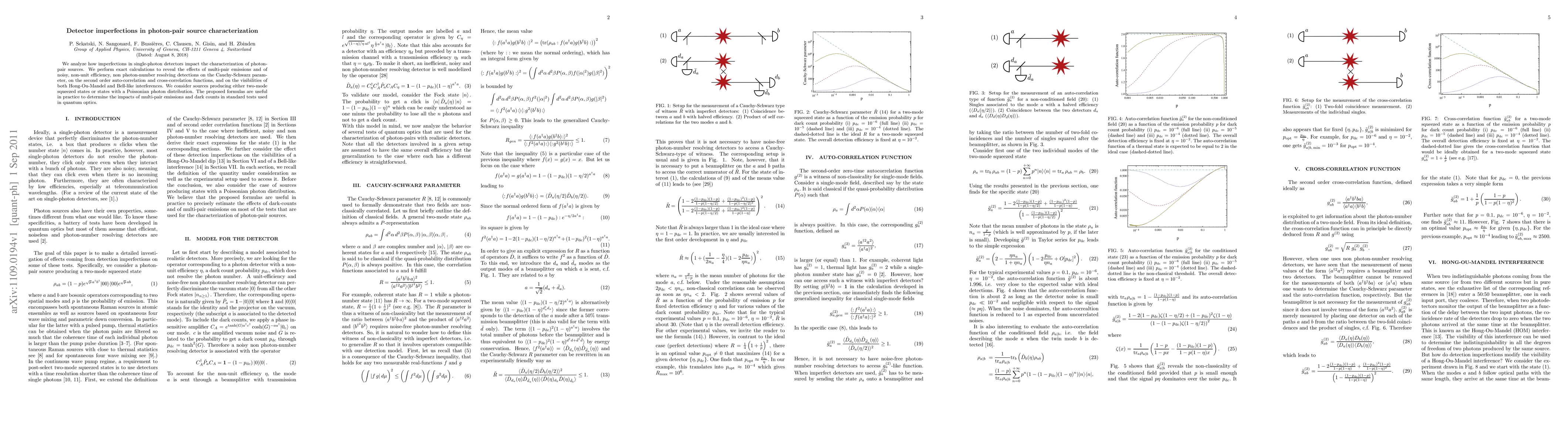 This paper investigates the effects of detector imperfections on the characterization of photon-pair sources, revealing how multi-pair emissions and non-unit efficiency detections impact key quantum parameters. Practical formulas are provided to assess the influence of these imperfections in standard quantum optics tests.