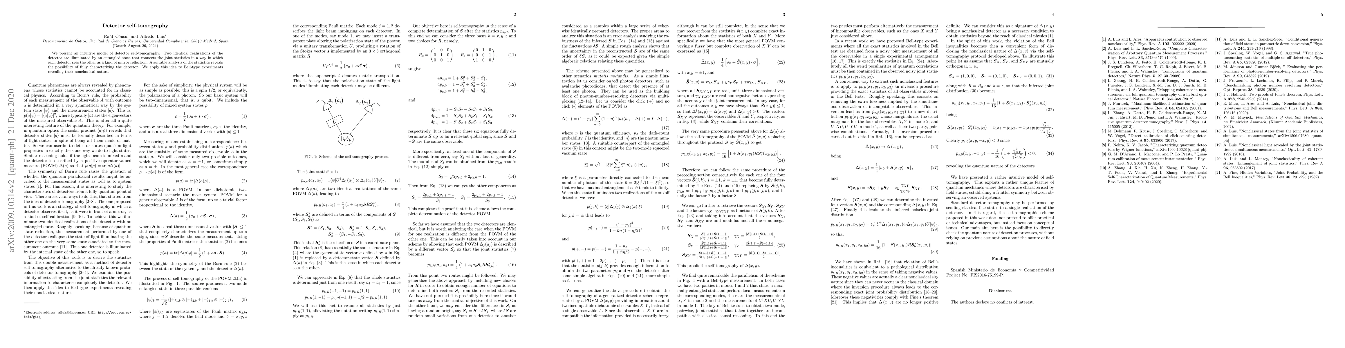 The paper introduces a method called 'detector self-tomography' using entangled states to characterize identical detectors, revealing their nonclassical nature in Bell-type experiments.