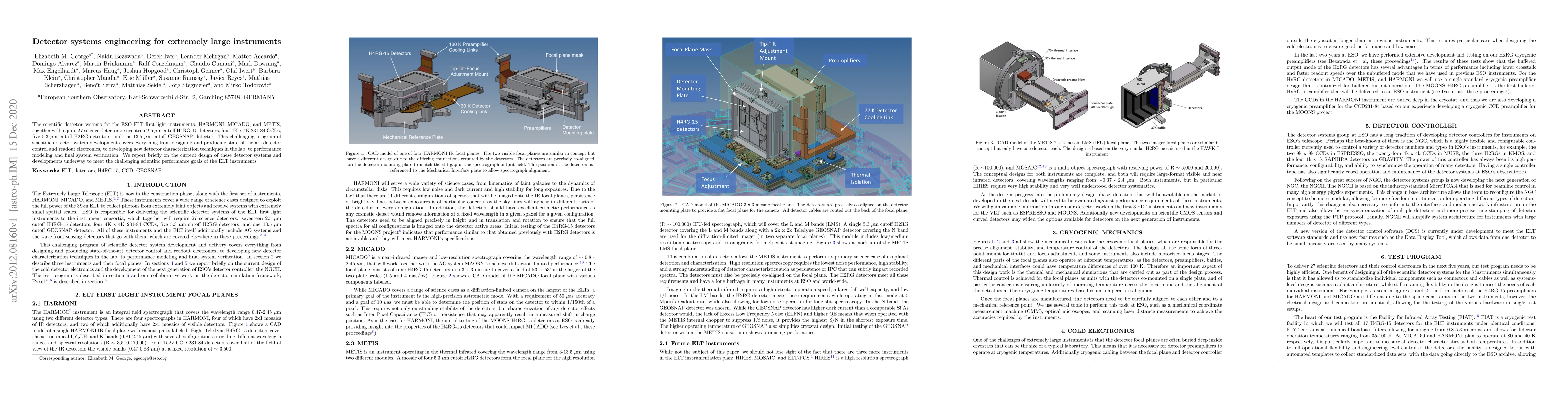 Researchers are developing advanced detector systems for Extremely Large Telescope (ELT) instruments, focusing on meeting scientific performance goals with cutting-edge technologies. The project involves designing electronics, characterizing detectors, and verifying system performance to support the ELT's first-light observations.