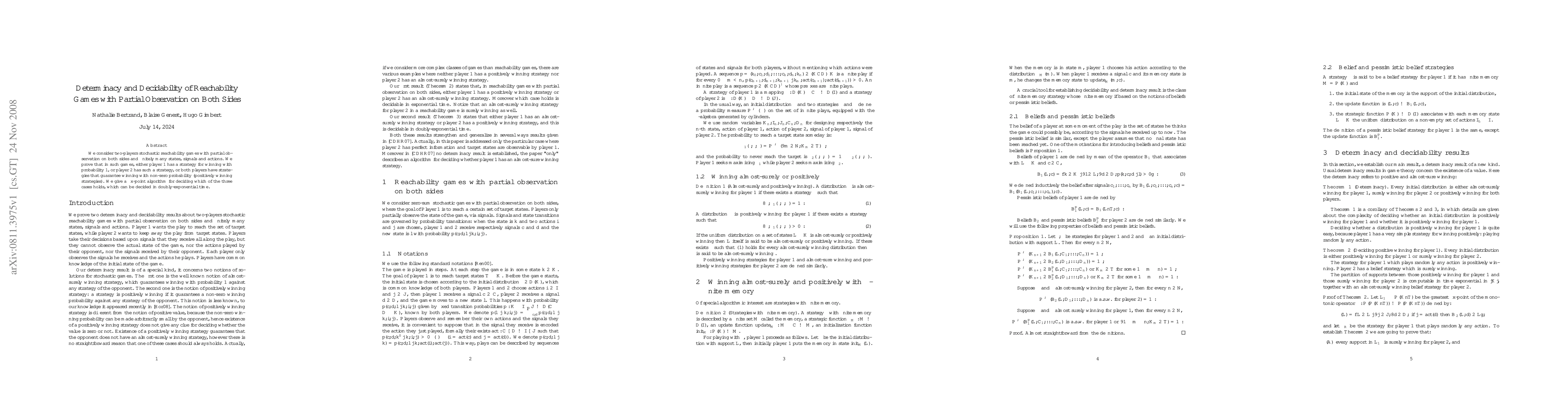 Summary: This paper establishes determinacy and decidability for two-player stochastic reachability games where both players have partial observation, featuring a finite number of states, signals, and actions. The results provide insights into the complexity and controllability of such games.