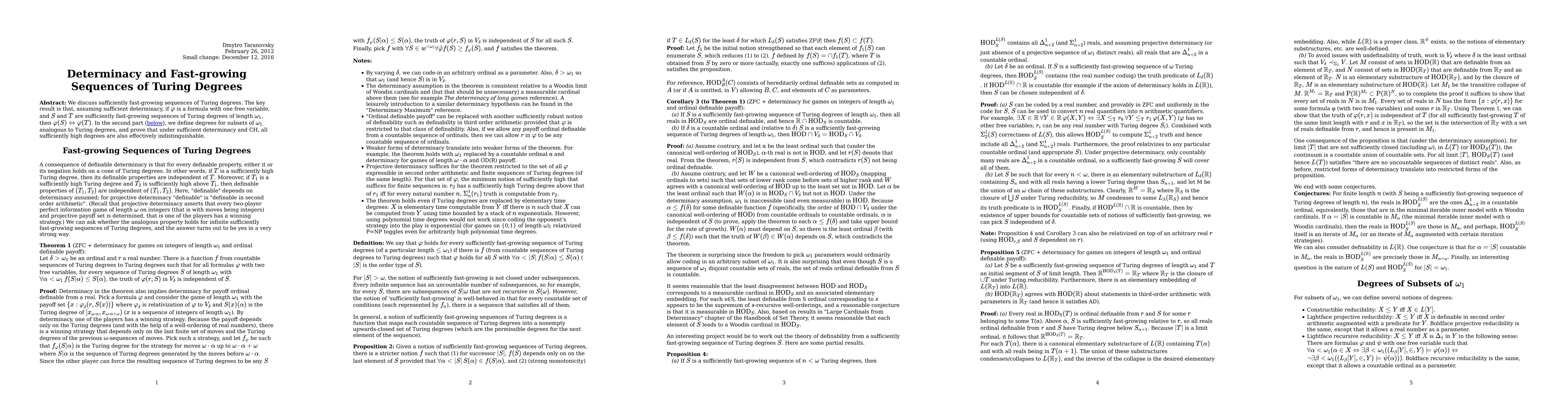 This paper explores fast-growing sequences of Turing degrees under the assumption of sufficient determinacy, proving that if $\phi$ is a formula with one free variable, then $\phi(S) \iff \phi(T)$ for sufficiently fast-growing sequences S and T of Turing degrees of length $\omega_1$. It also extends the concept of Turing degrees to subsets of $\omega_1$ and shows that under determinacy and CH, all sufficiently high degrees are effectively indistinguishable.