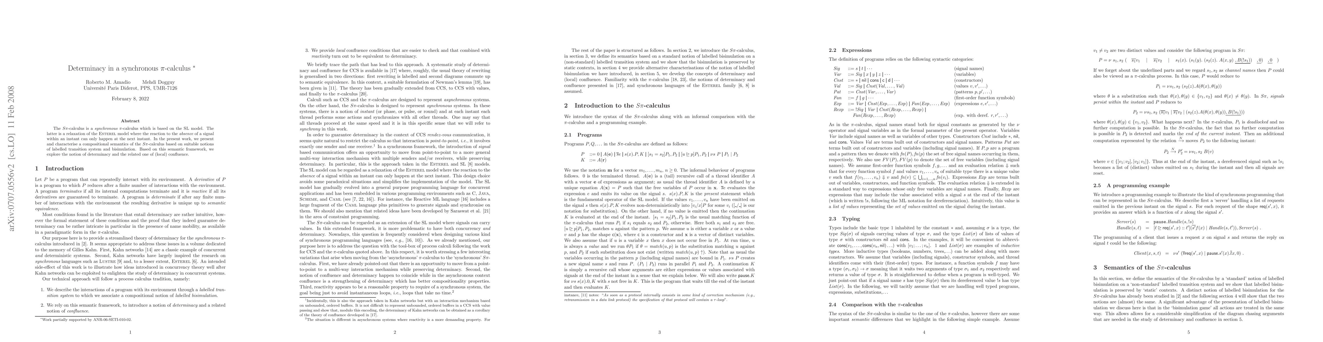 Researchers developed a compositional semantics framework for the S-pi-calculus, a synchronous pi-calculus, to study determinacy and confluence. They explored how this framework can help understand when processes in the calculus will always produce the same output given the same inputs.