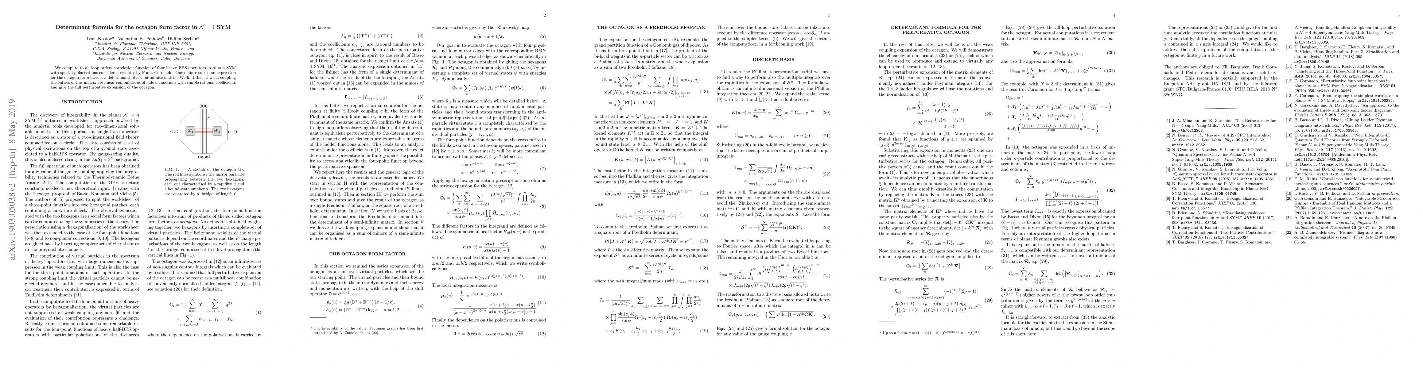 We compute to all loop orders correlation function of four heavy BPS operators in $\mathcal{N}$= 4 SYM with special polarisations considered recently by Frank Coronado. Our main result is an expression for the octagon form factor as determinant of a semi-infinite matrix. We find that at weak coupling the entries of this matrix are linear combinations of ladder functions with simple rational coefficients and give the full perturbative expansion of the octagon.