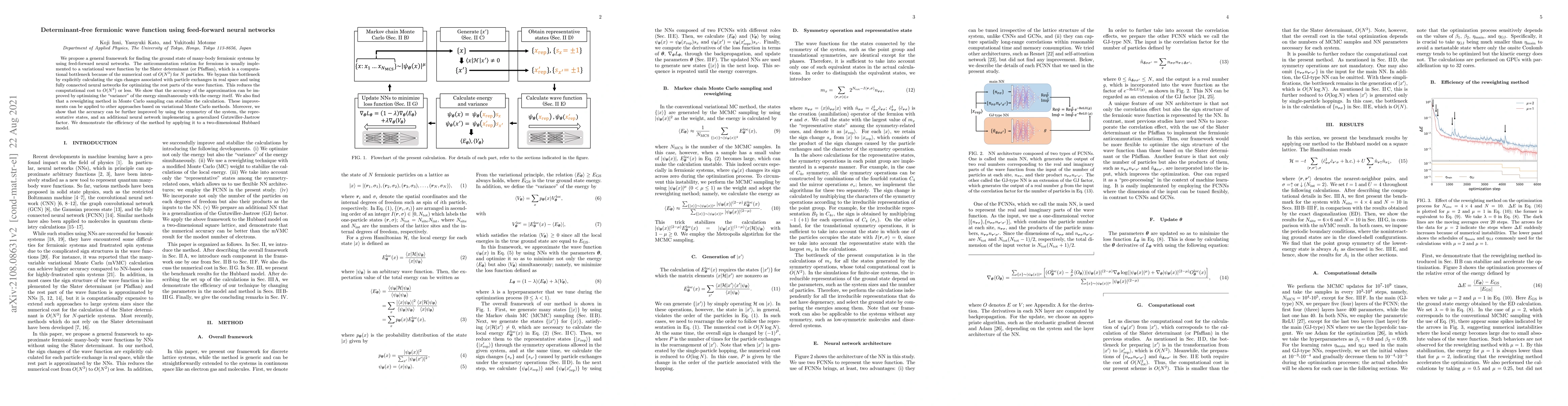 Researchers propose a new method using feed-forward neural networks to find the ground state of many-body fermionic systems, reducing computational cost and improving accuracy compared to traditional methods.