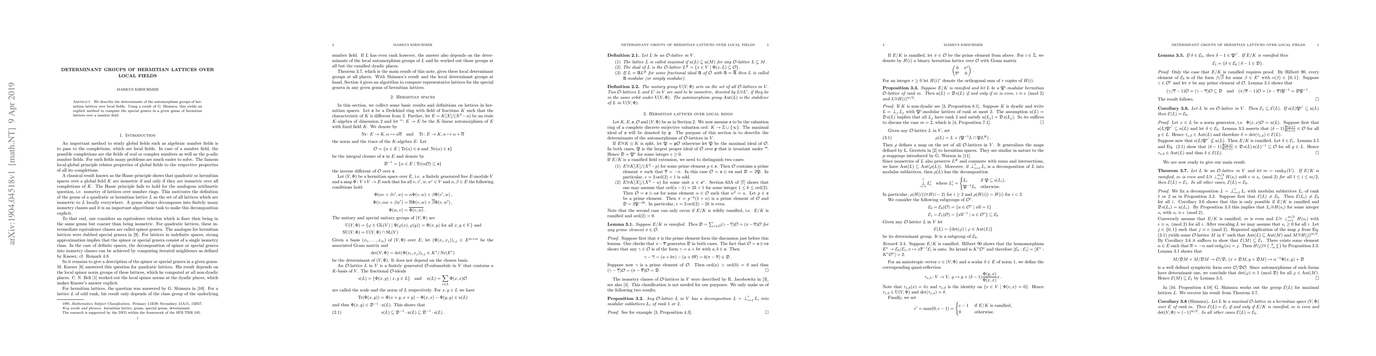 Researchers developed a method to compute special genera in hermitian lattices over number fields by analyzing the determinants of their automorphism groups.