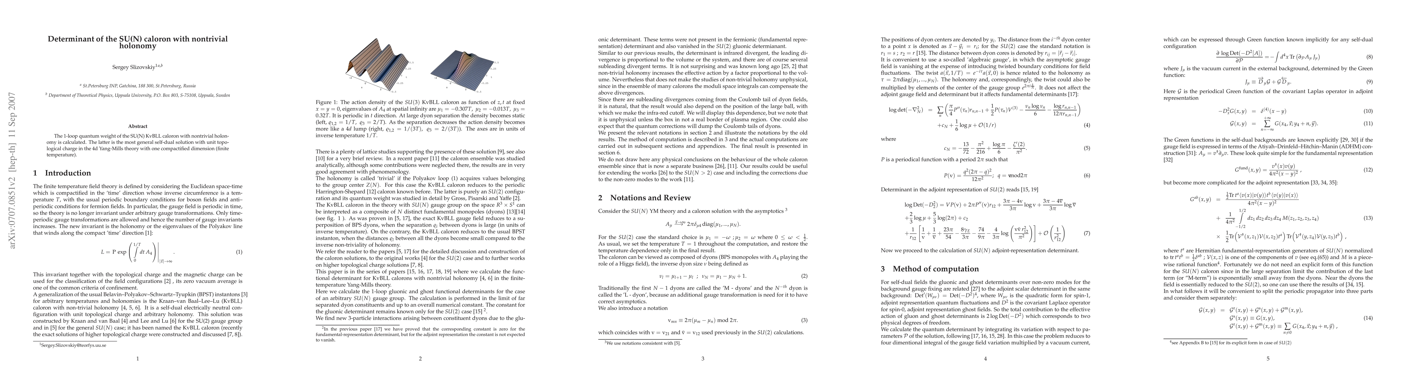 Summary: This paper calculates the 1-loop quantum weight of the SU(N) KvBLL caloron, a self-dual solution with nontrivial holonomy in 4-dimensional Yang-Mills theory at finite temperature, highlighting its topological charge.