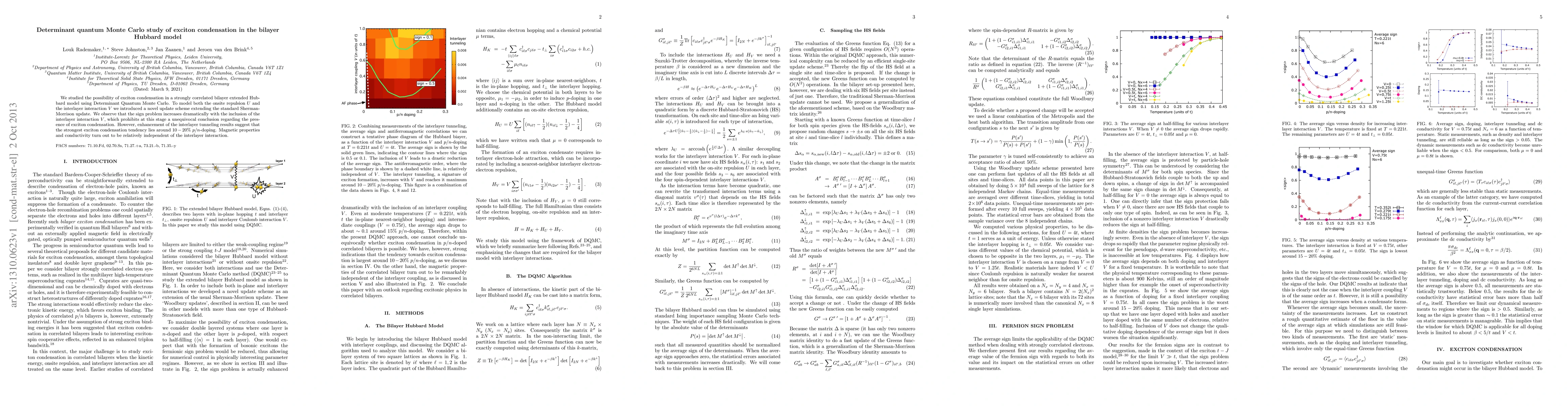 This study uses Determinant Quantum Monte Carlo to investigate exciton condensation in a bilayer Hubbard model, finding a significant sign problem with interlayer interaction that hinders definitive conclusions. The strongest exciton condensation tendencies are observed around 10-20% p/n-doping, while magnetic properties and conductivity remain largely unaffected by interlayer interactions.