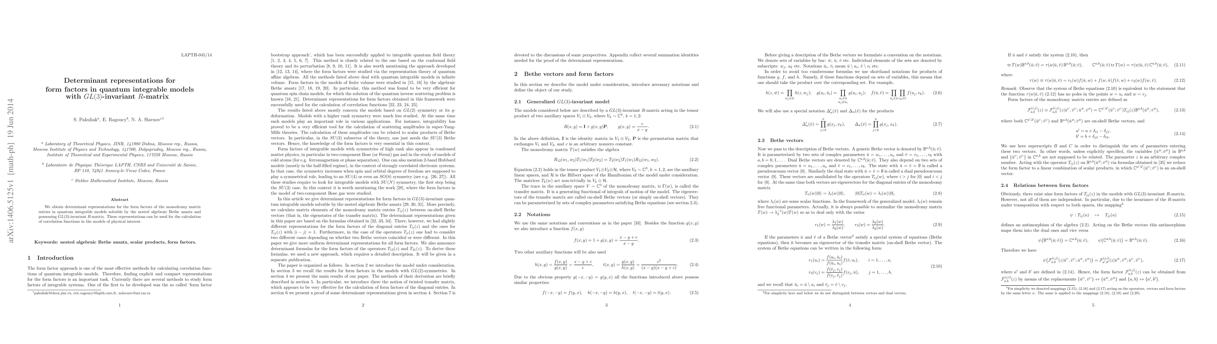 Researchers developed determinant representations for form factors in quantum integrable models with GL(3)-invariant R-matrix, enabling the calculation of correlation functions.