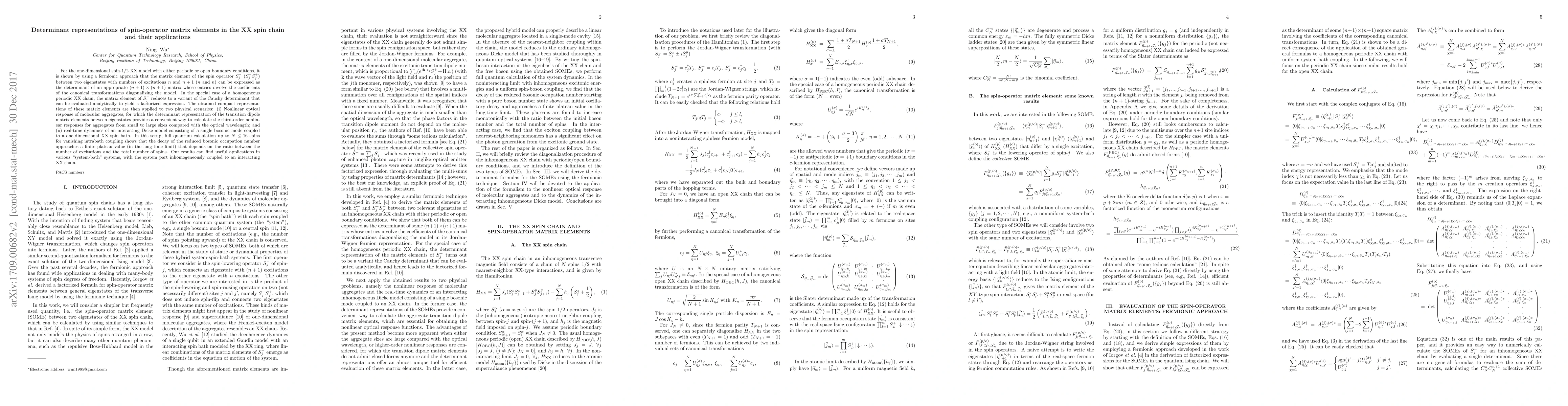 This paper presents determinant representations for spin-operator matrix elements in the XX spin chain, derived via a fermionic approach. These representations are applied to calculate nonlinear optical responses in molecular aggregates and the real-time dynamics of an interacting Dicke model, revealing a finite plateau in the decay of the reduced bosonic occupation number.