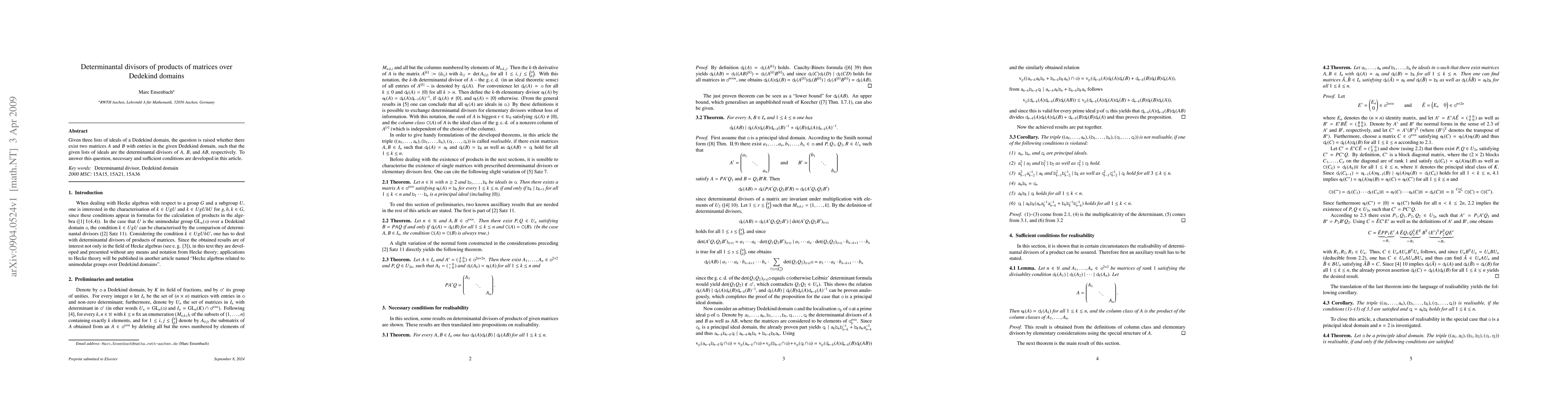 This paper develops necessary and sufficient conditions for the existence of matrices A and B over a Dedekind domain whose determinantal divisors match given lists of ideals, specifically for the determinants of A, B, and their product AB.