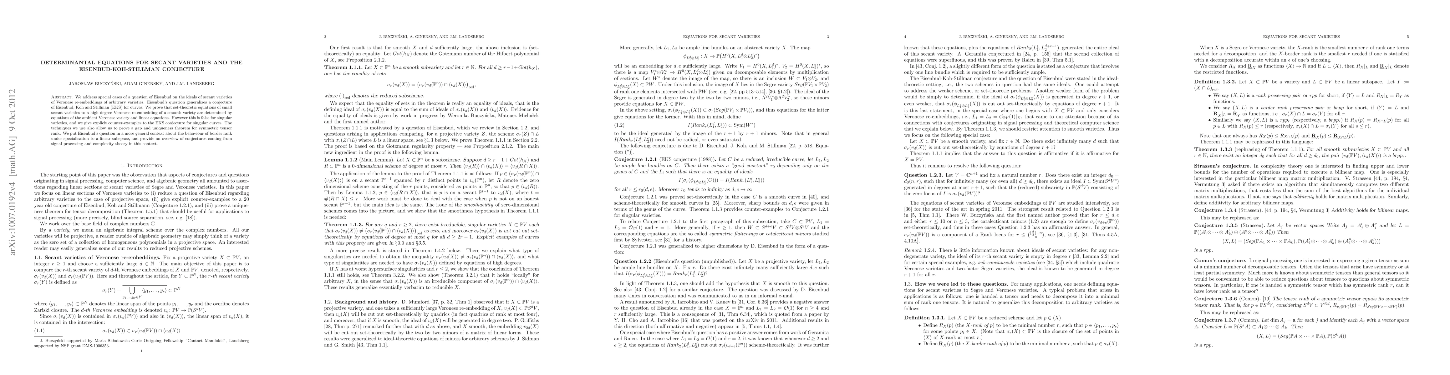 This paper proves that determinantal equations determine the set-theoretic structure of small secant varieties in high-degree Veronese re-embeddings of smooth varieties, but finds counterexamples for singular varieties, disproving a conjecture by Eisenbud, Koh, and Stillman. Additionally, it explores related conjectures in tensor rank and border rank, with implications for signal processing and complexity theory.