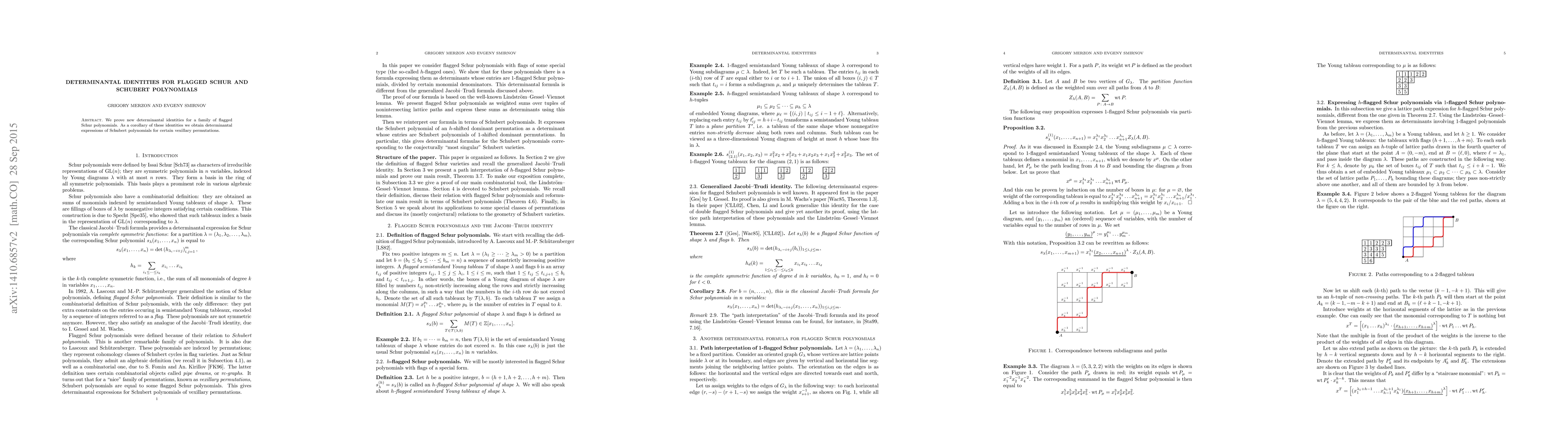 This paper proves novel determinantal identities for flagged Schur polynomials, leading to determinantal expressions for Schubert polynomials of specific vexillary permutations. These results enhance the understanding of the algebraic structures underlying these important combinatorial objects.