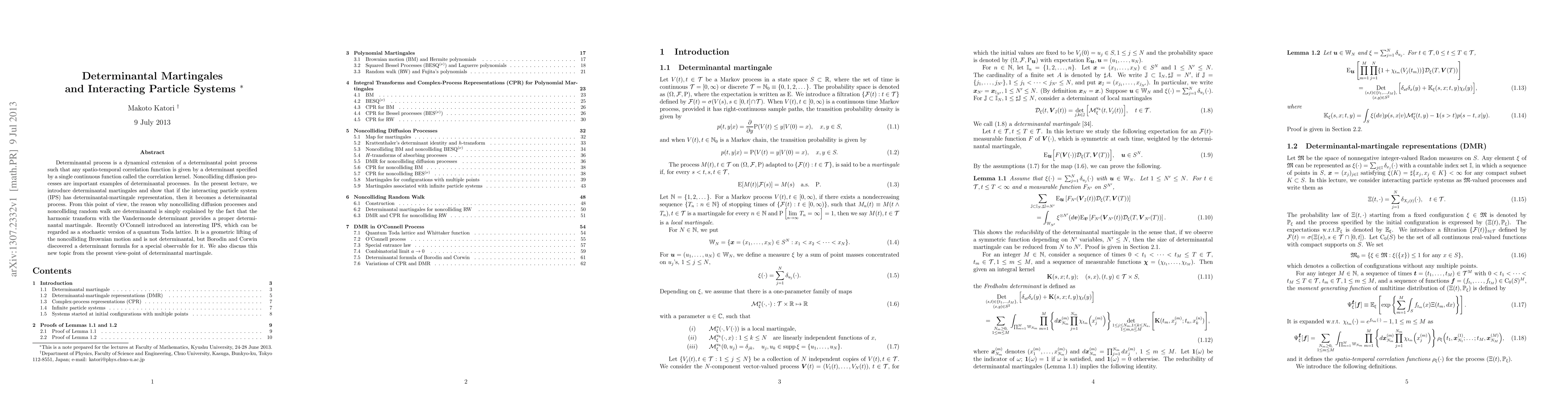 Determinantal process is a dynamical extension of a determinantal point process such that any spatio-temporal correlation function is given by a determinant specified by a single continuous function called the correlation kernel. Noncolliding diffusion processes are important examples of determinantal processes. In the present lecture, we introduce determinantal martingales and show that if the interacting particle system (IPS) has determinantal-martingale representation, then it becomes a determinantal process. From this point of view, the reason why noncolliding diffusion processes and noncolliding random walk are determinantal is simply explained by the fact that the harmonic transform with the Vandermonde determinant provides a proper determinantal martingale. Recently O'Connell introduced an interesting IPS, which can be regarded as a stochastic version of a quantum Toda lattice. It is a geometric lifting of the noncolliding Brownian motion and is not determinantal, but Borodin and Corwin discovered a determinant formula for a special observable for it. We also discuss this new topic from the present view-point of determinantal martingale.