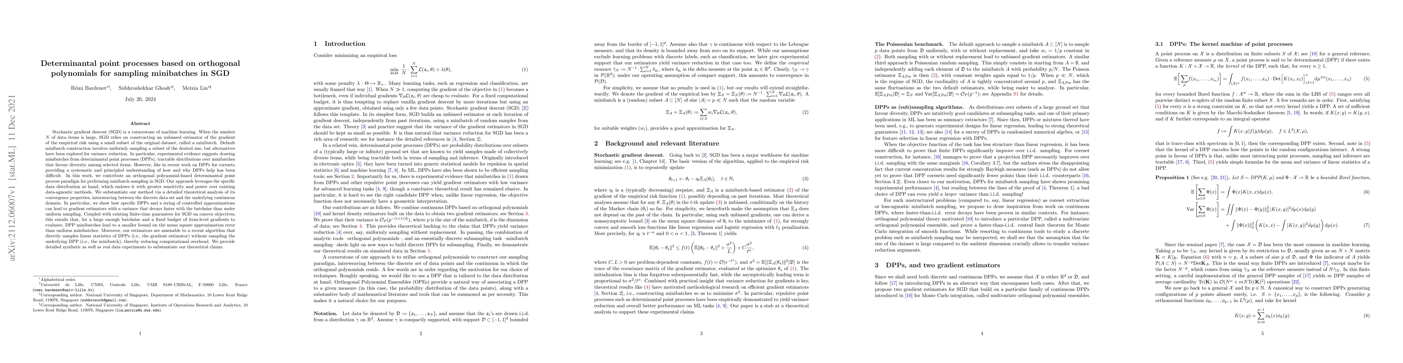 Researchers developed an orthogonal polynomial-based determinantal point process approach for sampling minibatches in stochastic gradient descent (SGD), showing improved variance reduction and faster convergence properties compared to uniform sampling.