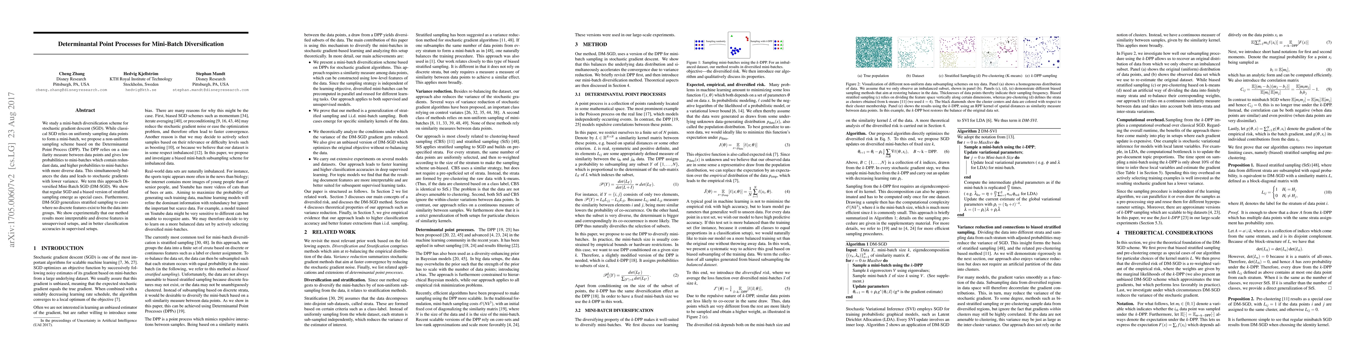 A new method called Diversified Mini-Batch SGD uses a Determinantal Point Process to select data points for mini-batches, resulting in more diverse features and better classification accuracies.