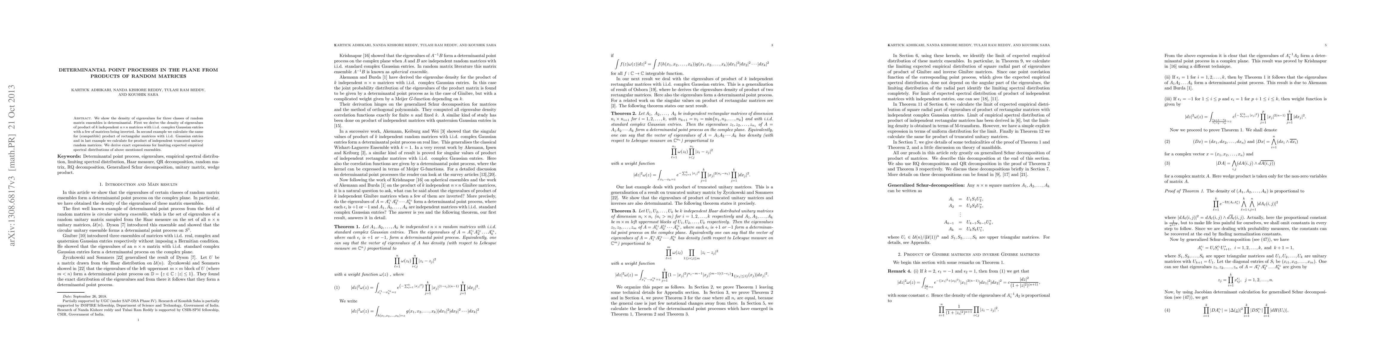 This paper demonstrates that the eigenvalue densities of three classes of random matrix products are determinantal. It derives exact expressions for the limiting expected empirical spectral distributions of products of independent random matrices, including Gaussian and truncated unitary matrices.